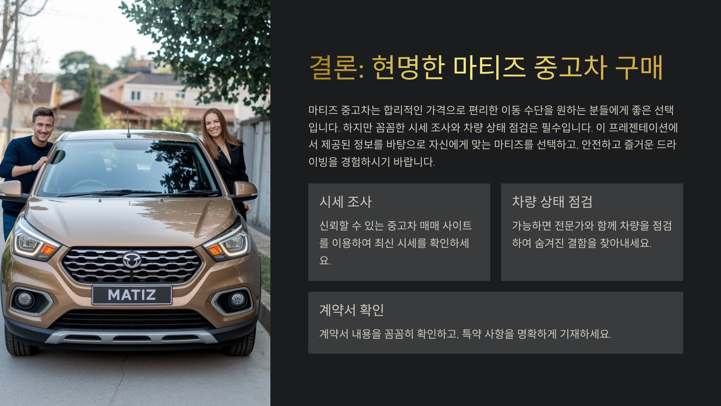 결론: 현명한 마티즈 중고차 구매, 이제 당신의 차례입니다!