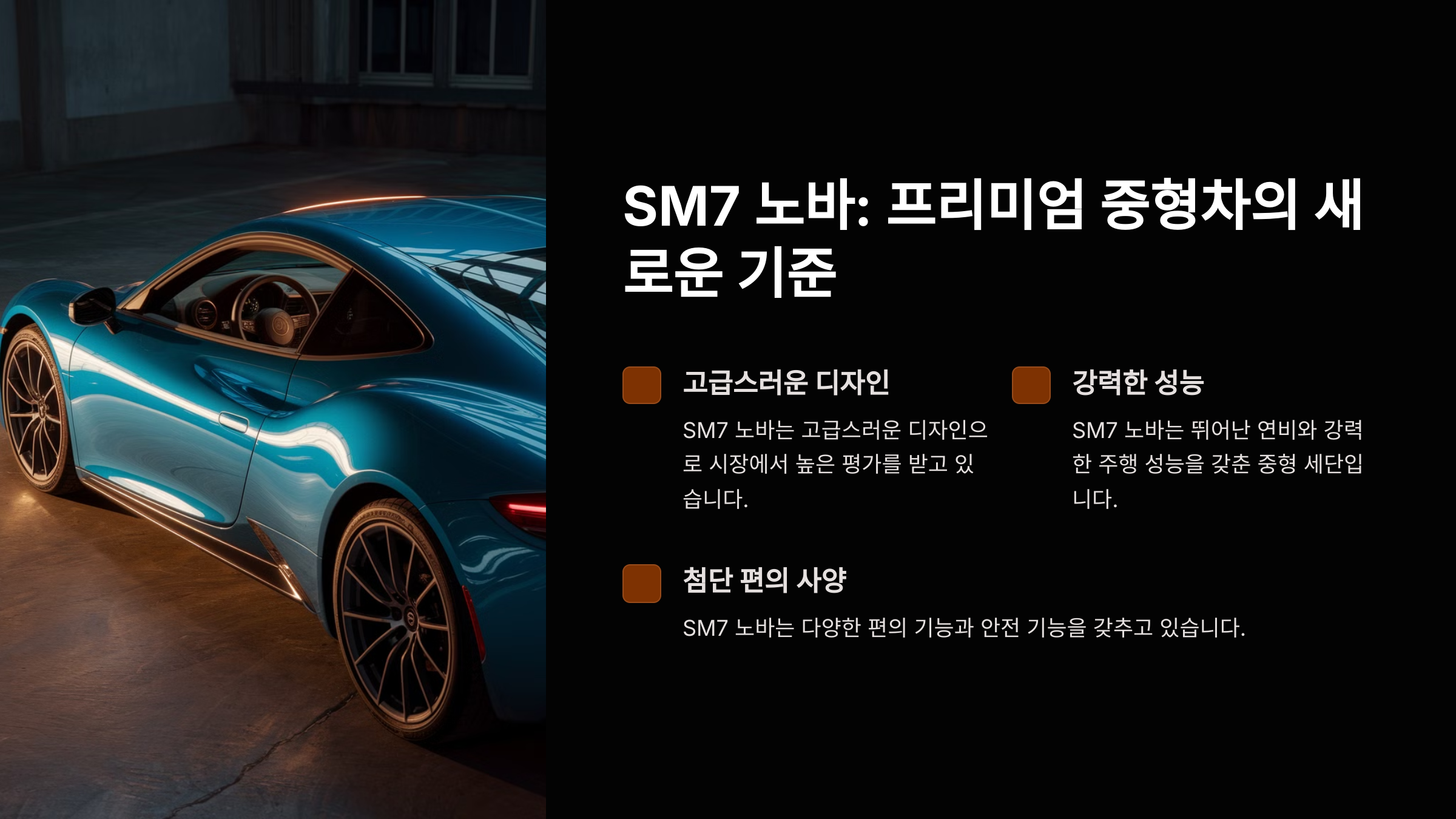 SM7은 2004년부터 현재까지 다양한 모델이 출시되었습니다. 각 연식별 SM7 중고 가격을 상세히 분석하여, 예산과 필요에 맞는 최적의 모델을 선택할 수 있도록 돕겠습니다. 특히 SM7 노바는 페이스리프트 모델로, 디자인과 성능 면에서 많은 개선이 이루어졌습니다. SM7 노바 중고차 시세 정보도 꼼꼼히 다루겠습니다.
