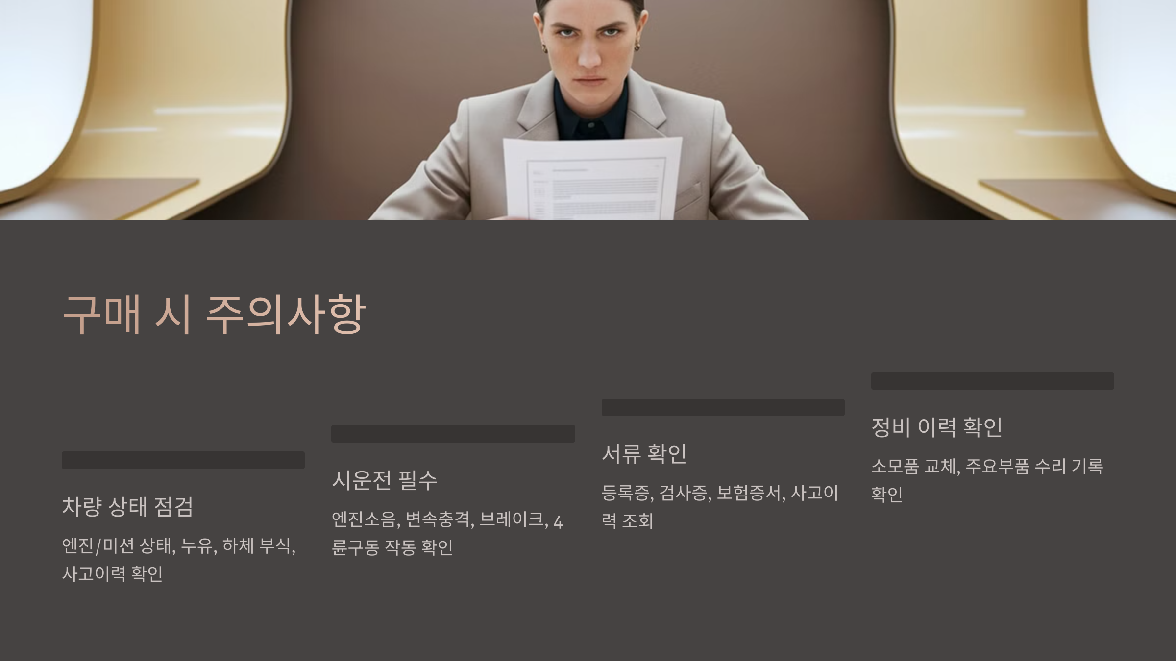 - 개인 직거래: 수수료가 없다는 장점이 있지만, 차량 상태 점검 및 법적 문제 발생 시 책임 소재가 불분명하다는 단점이 있습니다.