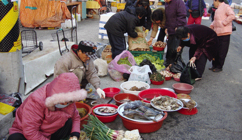 거제오일장에서는 해산물뿐만 아니라 강원도 농산물 못지않게 신선한 농산물도 많이 판매돼요. 감자, 고구마, 다양한 채소 등 계절에 따라 농산물의 종류도 달라지며, 그 신선도는 어디에도 뒤지지 않아요.