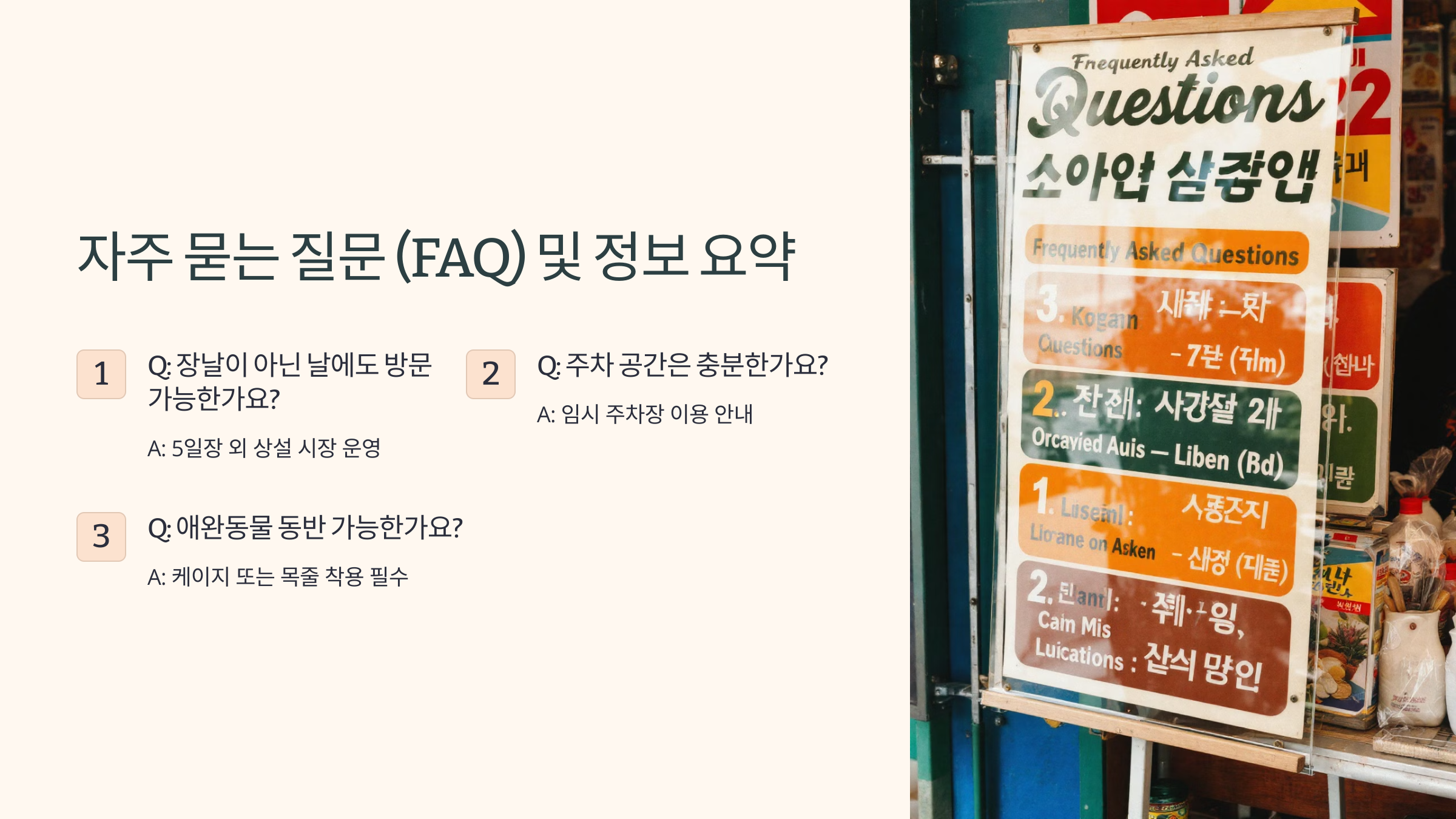 곡성 오일장은 대중교통과 자가용 모두 편리하게 이용할 수 있어요. 이제 장날을 제대로 즐길 준비가 되었나요? 🎉 마지막으로 곡성장날에 대해 자주 묻는 질문을 정리해볼게요!