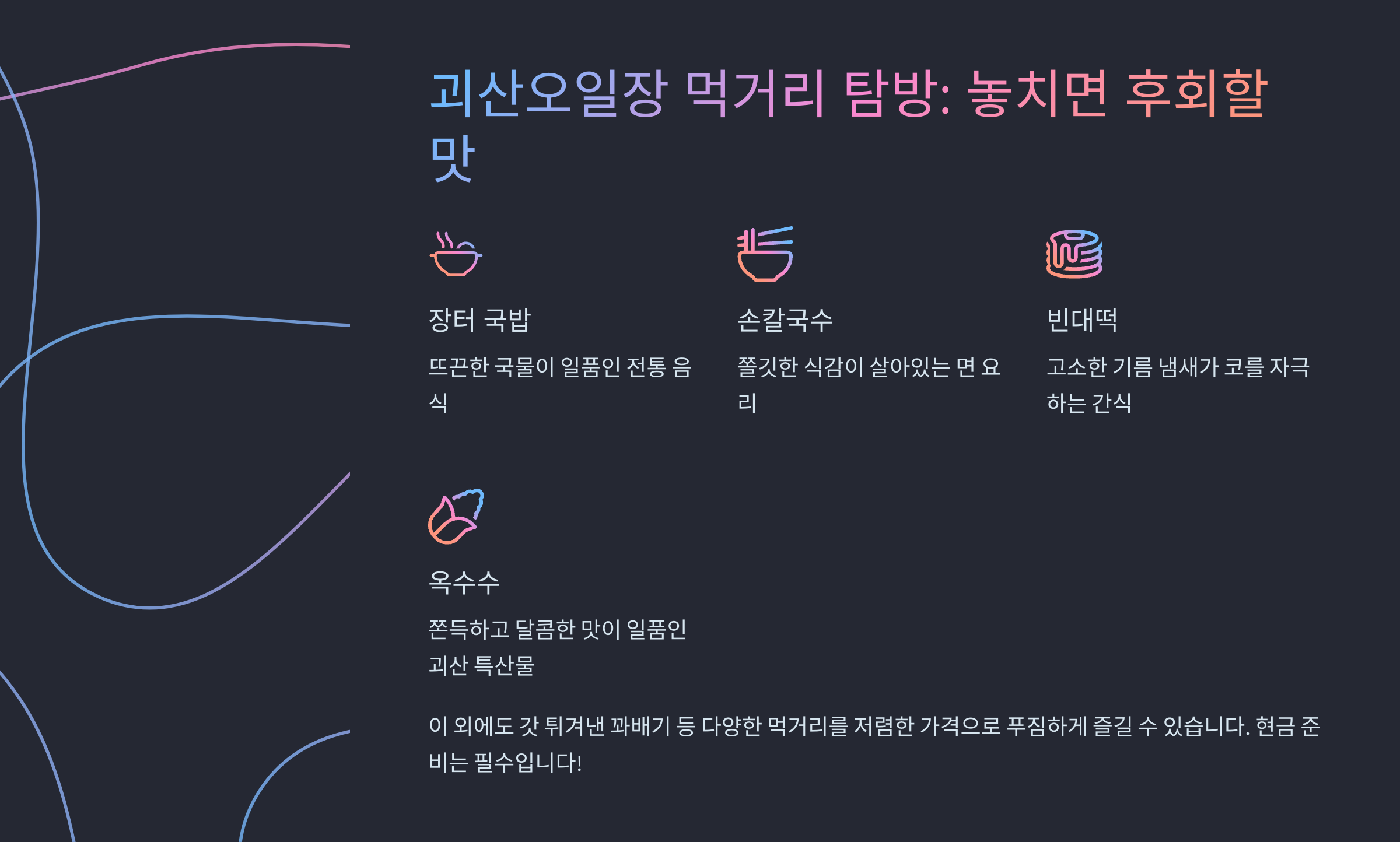 괴산오일장 먹거리 탐방: 놓치면 후회할 맛