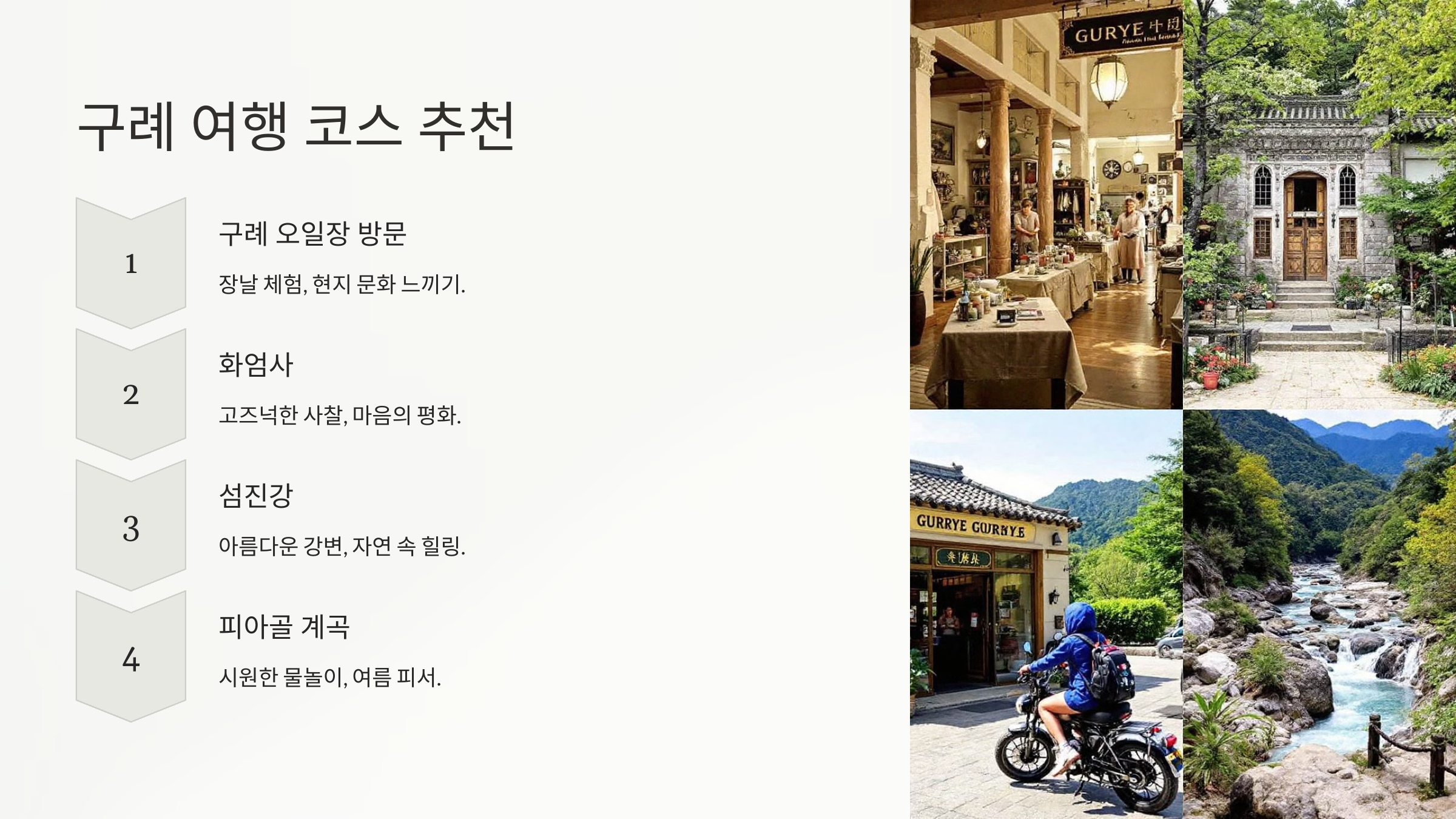 구례 오일장을 다녀오면서 이런 관광지를 함께 방문하면 더욱 알찬 여행이 될 거예요! ✨