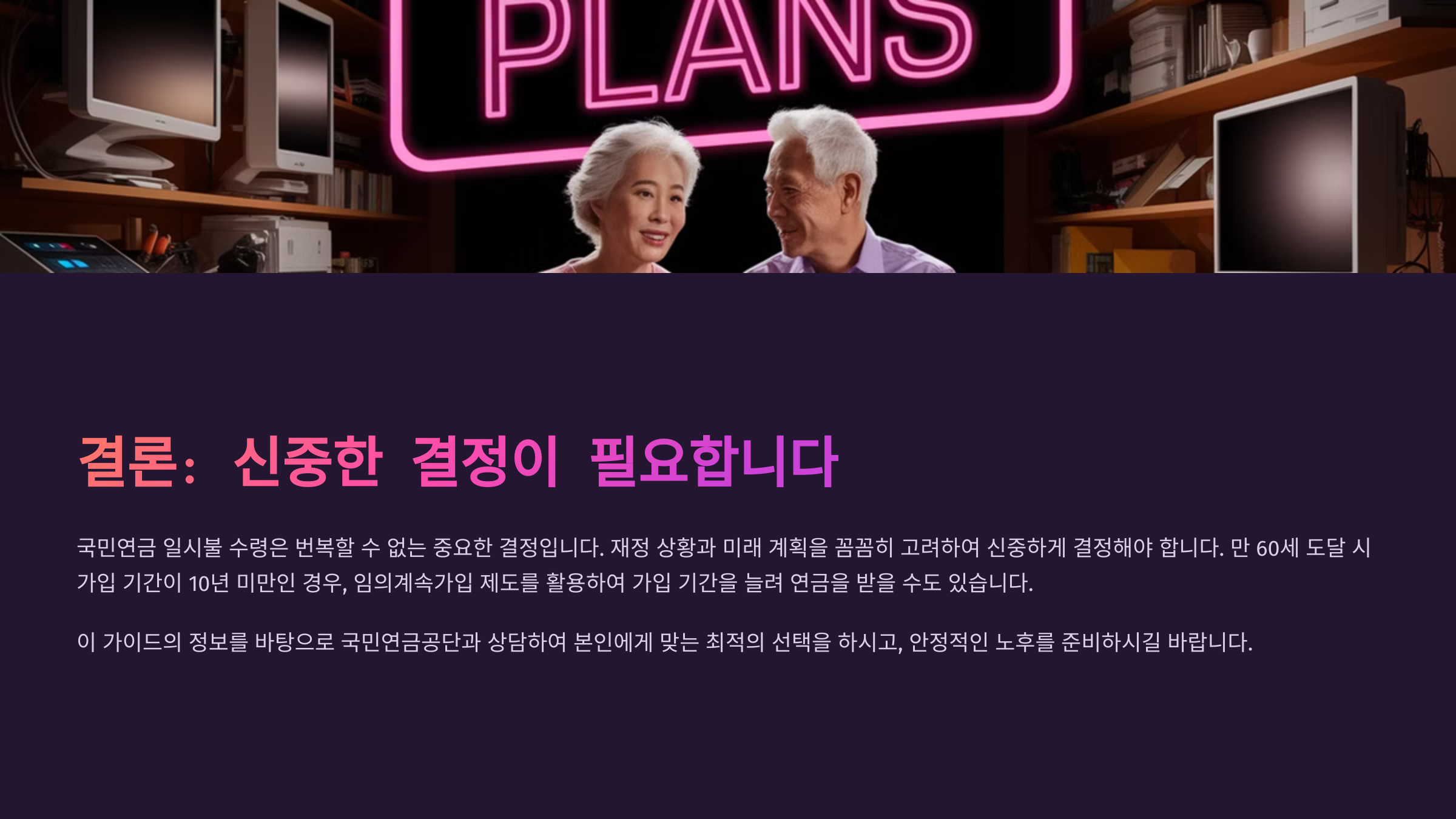 | 신중한 결정 | 재정 상황/미래 계획 고려, 임의계속가입 제도 활용 가능 |
