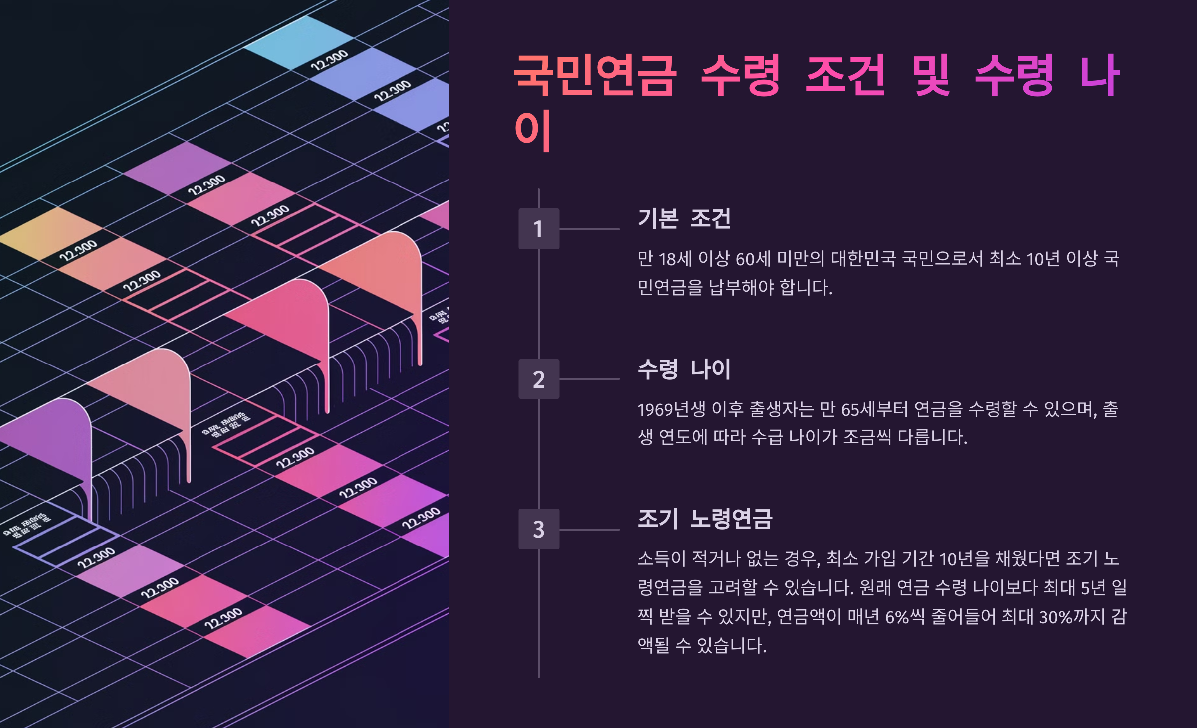 | 기본 조건 | 만 18세 이상 60세 미만, 최소 10년 이상 납부 |