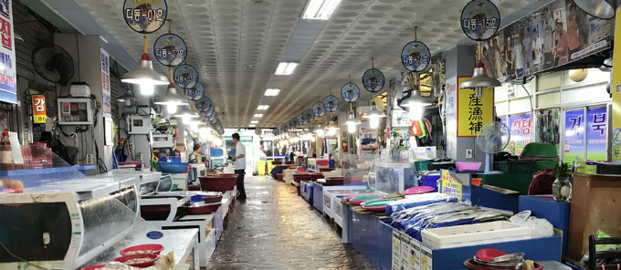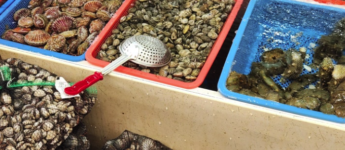 A8. 해산물 코너에서 갓 잡아온 수산물을 선택하면 현장에서 바로 손질해 줘요. 구매 후 포장도 가능해요.