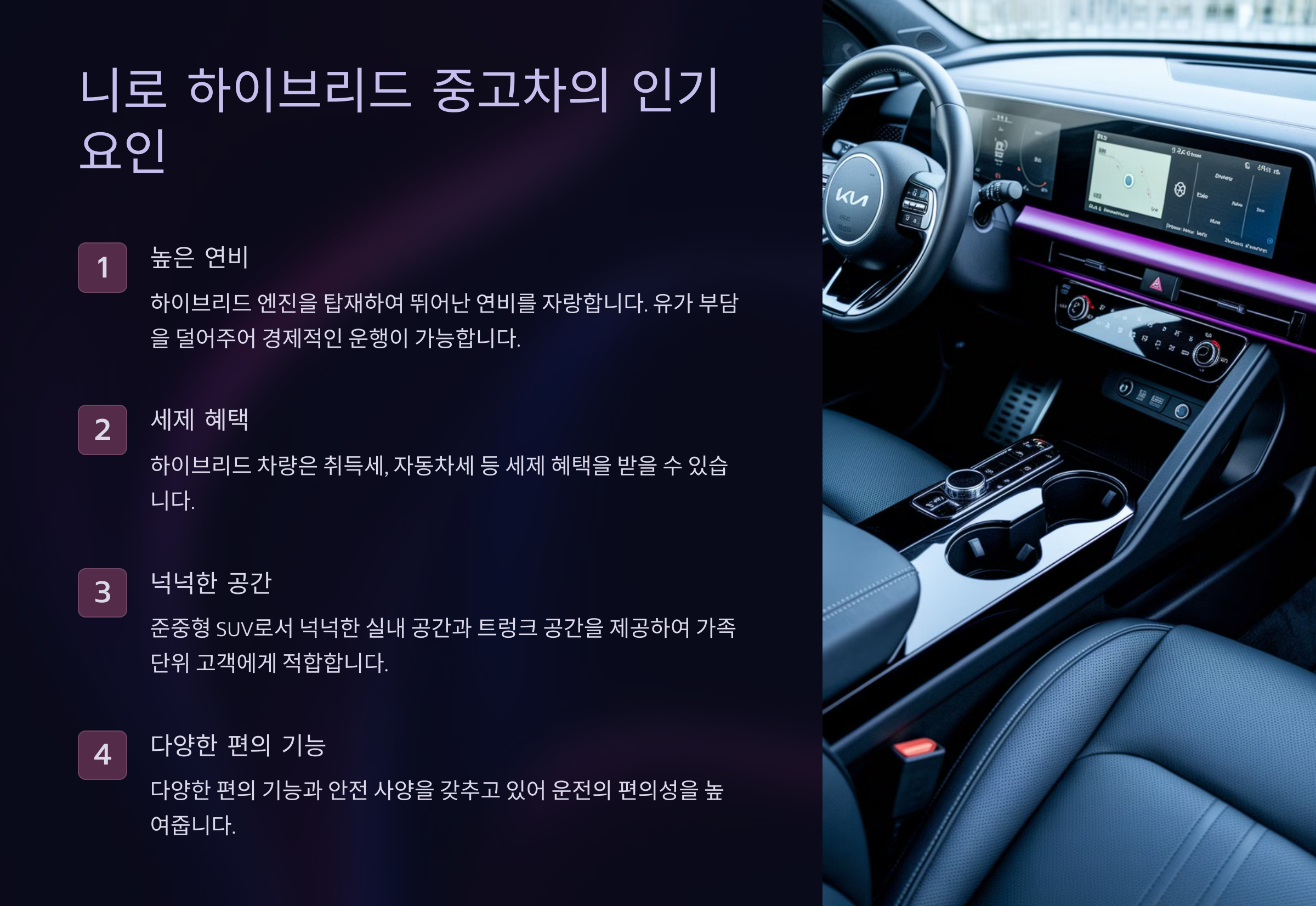 니로 하이브리드 중고차, 왜 인기가 많을까?