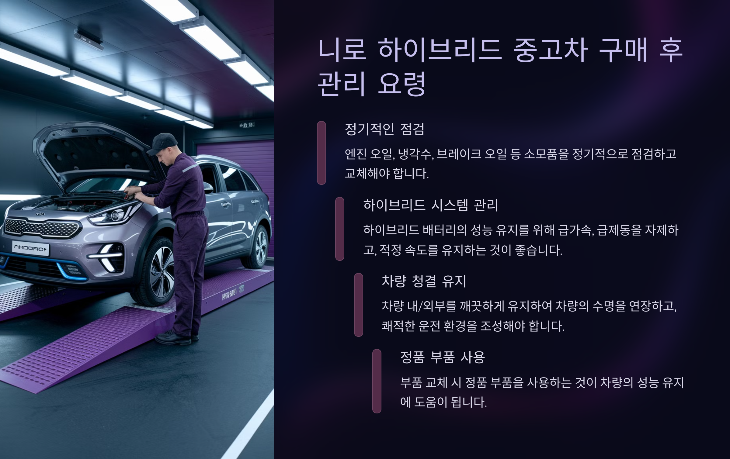 니로 하이브리드 중고차를 구매한 후에는 꾸준한 관리가 필요합니다.