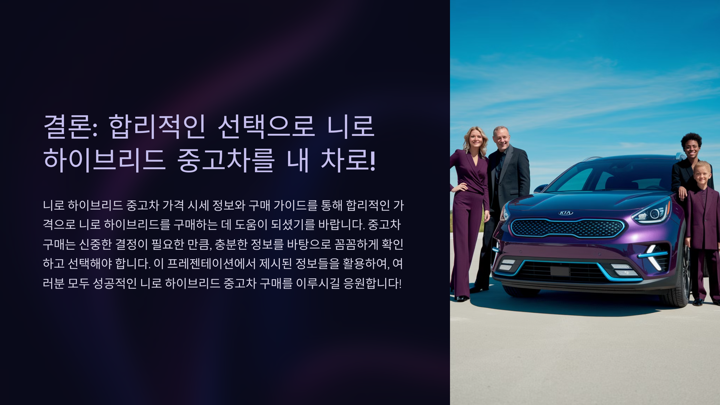 결론: 합리적인 선택으로 니로 하이브리드 중고차를 내 차로!