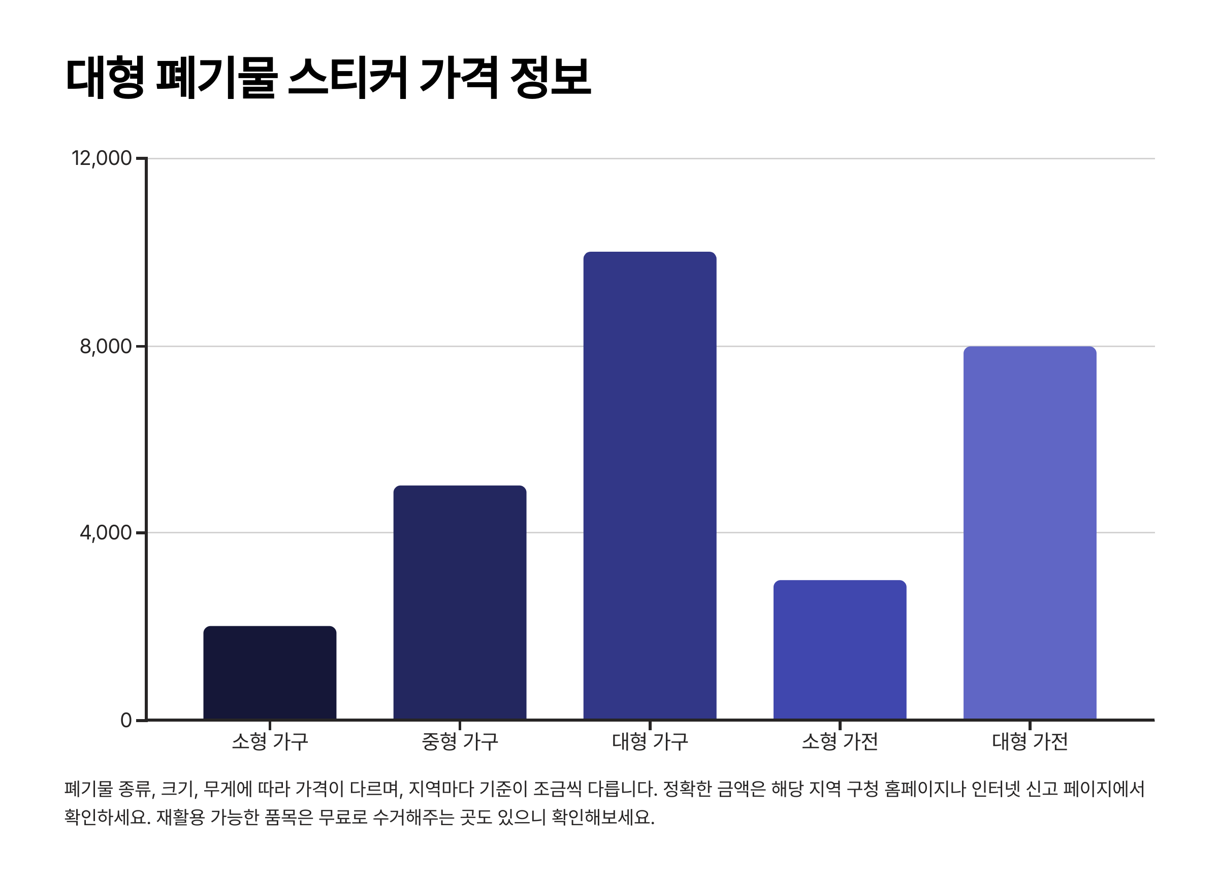| 폐기물 종류, 크기, 무게 | 가격 결정 | 해당 지역 구청 홈페이지/신고 페이지 |