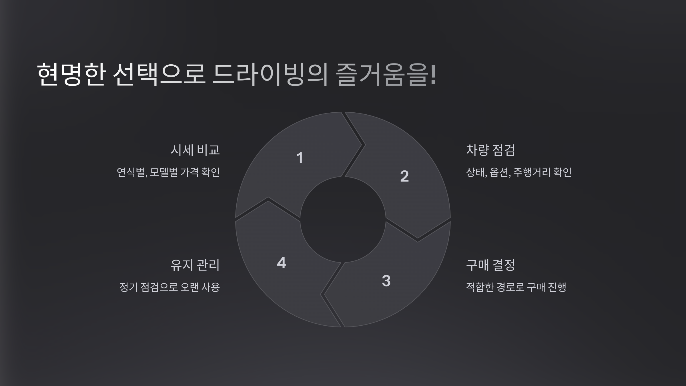 어떤 경로를 선택하든, 차량 상태를 꼼꼼하게 확인하고, 시운전을 통해 차량의 성능을 직접 느껴보는 것이 중요합니다.