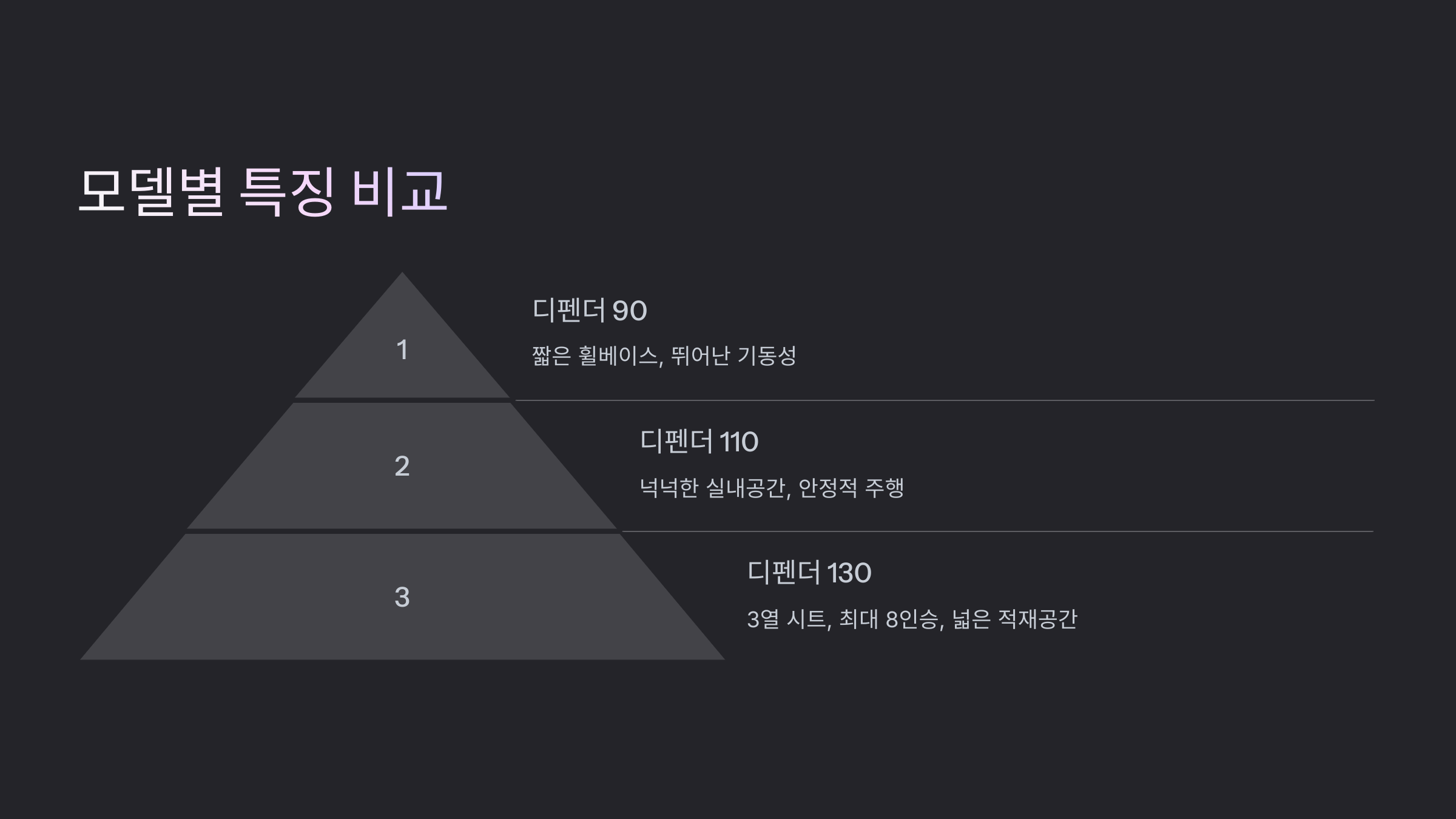 디펜더는 단순한 이동 수단을 넘어, 삶의 방식과 철학을 담는 도구입니다. 캠핑, 오프로드, 여행 등 다양한 아웃도어 활동을 즐기는 사람들에게 디펜더는 단순한 자동차가 아닌, 동반자이자 든든한 지원군입니다. 디펜더를 소유한다는 것은 곧 자유와 모험을 향한 열정을 표현하는 것이기도 합니다.