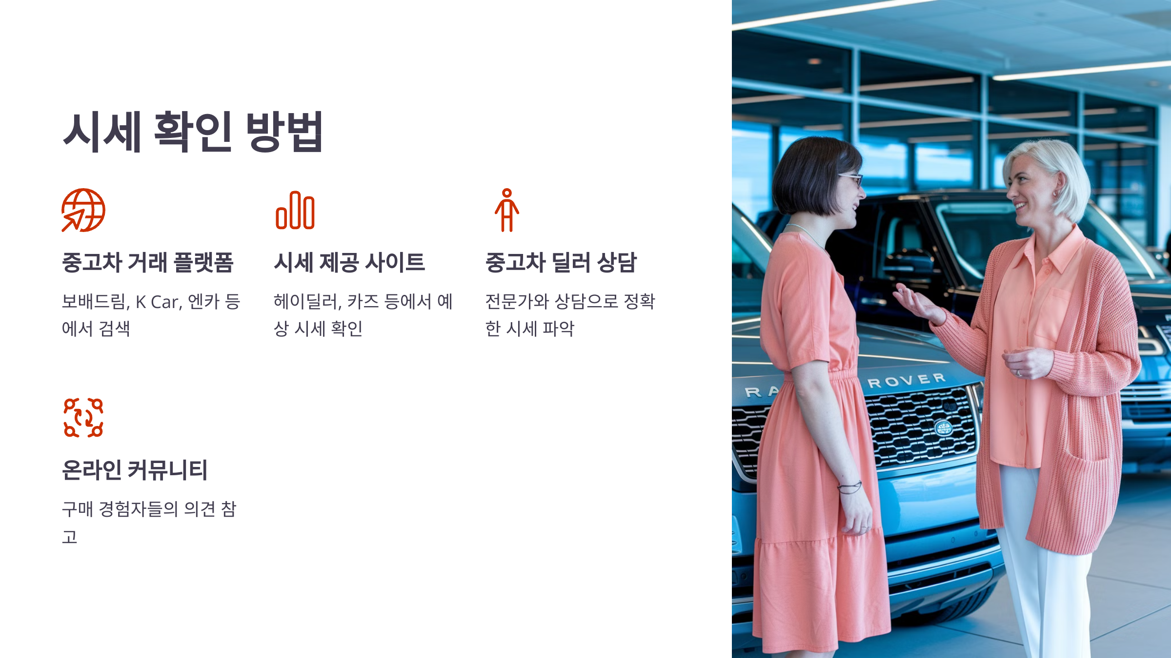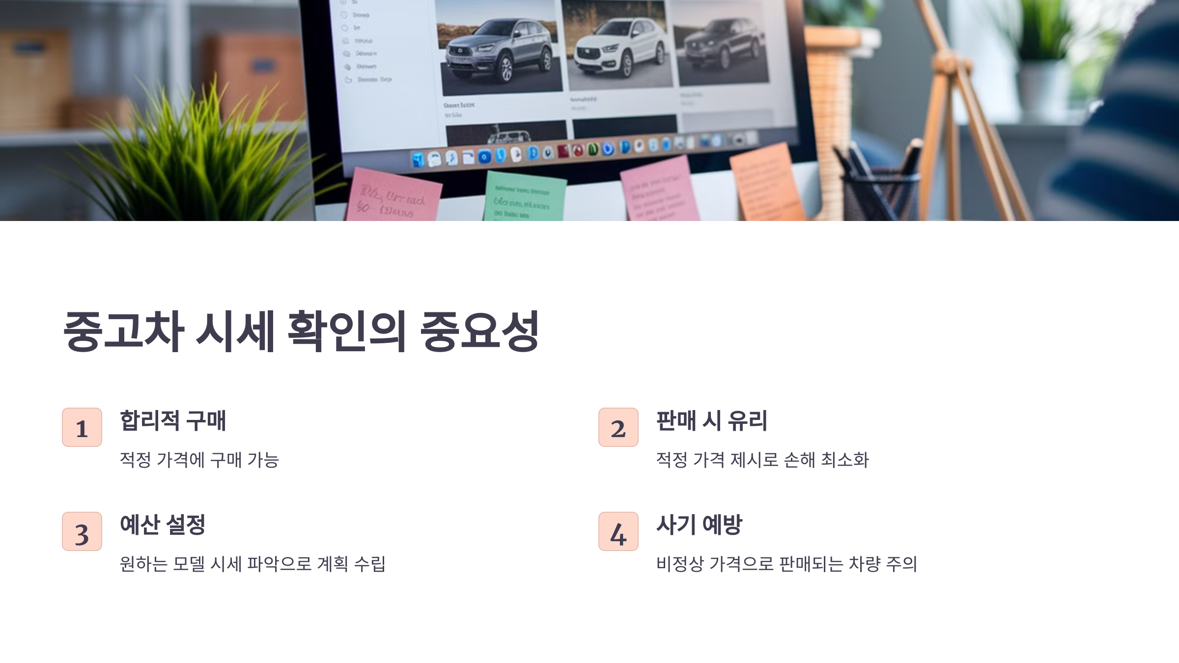 - 합리적인 구매: 시세를 제대로 알면, 지나치게 비싸게 판매되는 차량을 피하고, 적정 가격에 구매할 수 있습니다.