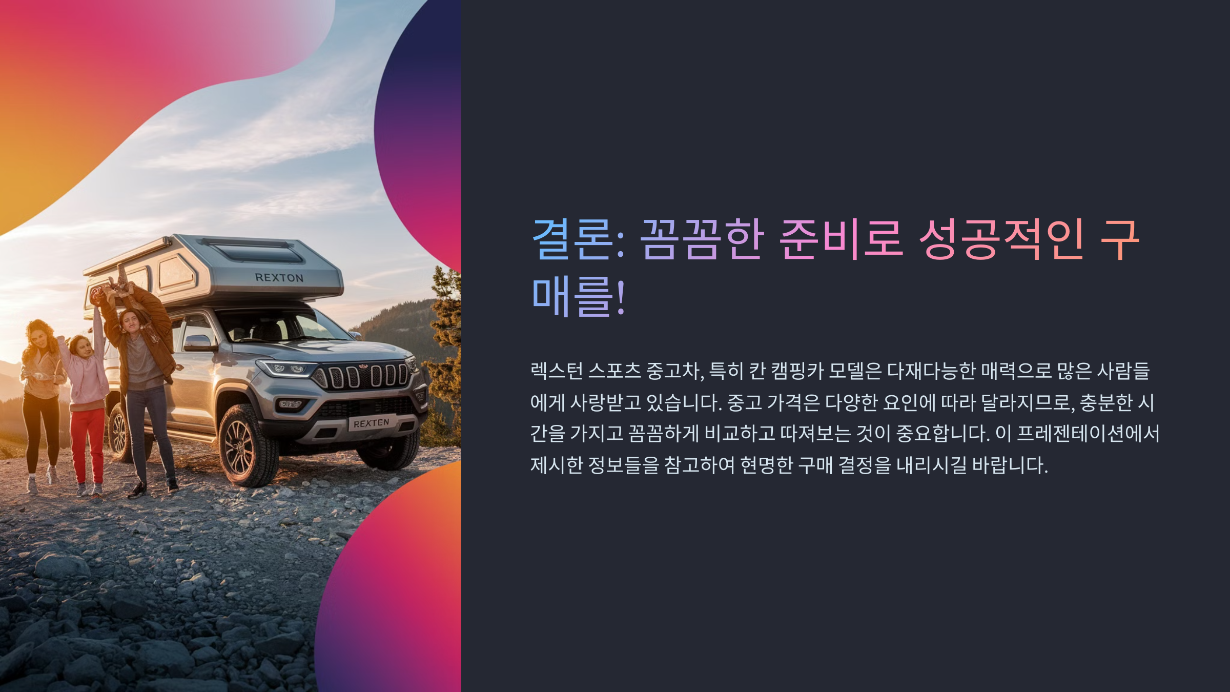 결론: 꼼꼼한 준비로 렉스턴 스포츠 중고차, 성공적인 구매를!
