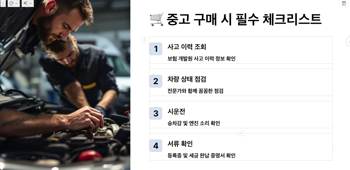 | 정비 기록 제공 | 정기 점검 기록을 제공하면 신뢰도가 올라감 |