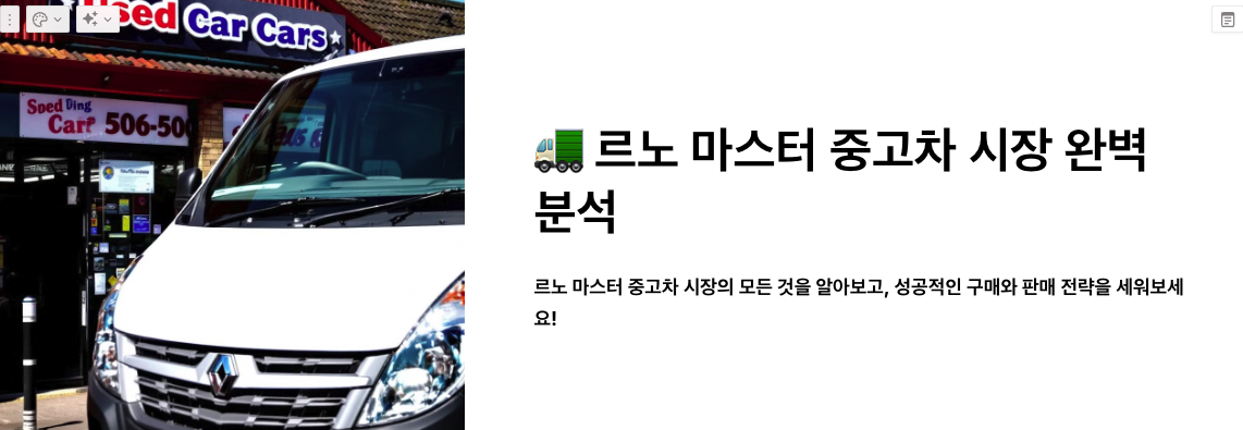 📢 이제부터 각 섹션별로 상세한 내용을 확인해볼까요? 아래에서 2025년 2월 기준 르노 마스터 중고차 시세와 다양한 정보를 살펴보세요! 🚀