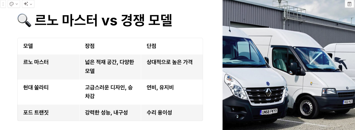 🔍 르노 마스터 vs 경쟁 모델 비교