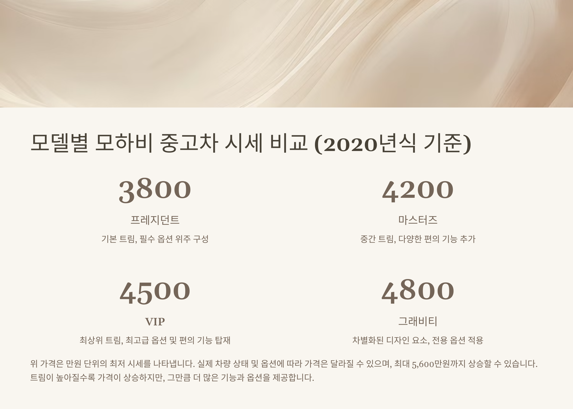 모델별 모하비 중고차 시세 비교