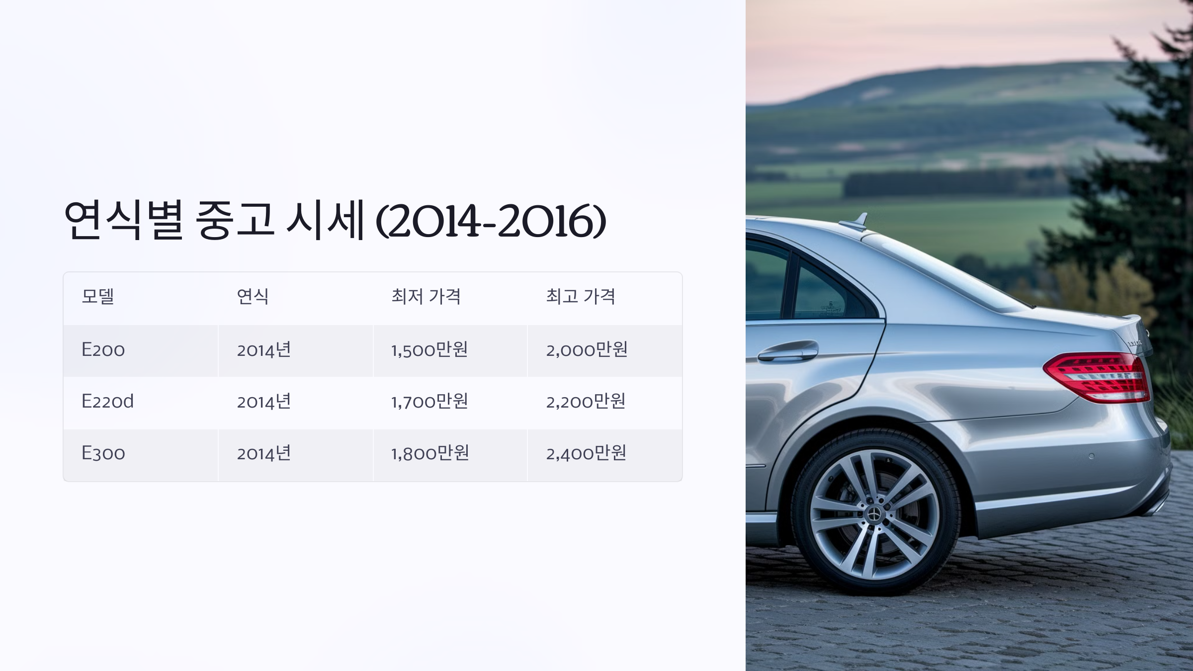 | E200 | 2014년 | 1,500만원 | 2,000만원 |
