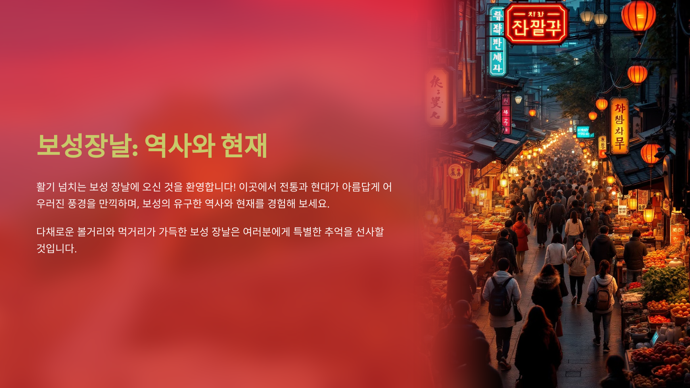 보성 오일장은 단순한 장터가 아니라, 지역 주민들의 삶이 녹아있는 공간이에요. 직접 가서 다양한 사람들을 만나고, 정겨운 시장 분위기를 느껴보는 것도 좋은 경험이 될 거예요. 😊