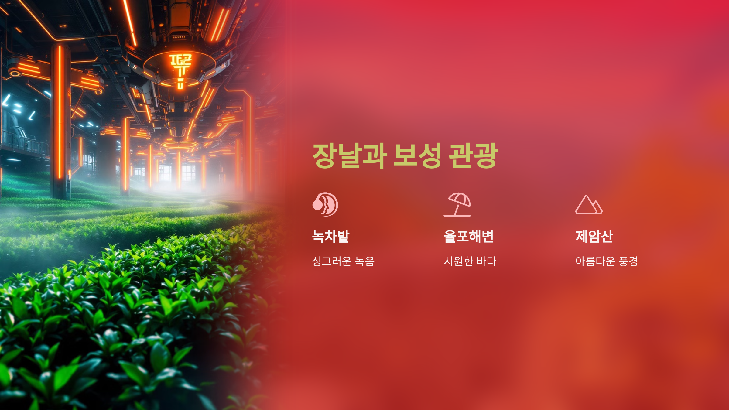 특히 보성 녹차밭은 전국적으로도 유명한 명소예요. 광활한 녹차밭을 배경으로 사진을 찍으면 마치 외국에 온 듯한 느낌이 들어요. 또한, 보성에는 해변과 온천도 있어서 힐링 여행을 즐기기에도 제격이랍니다. 🌊♨️