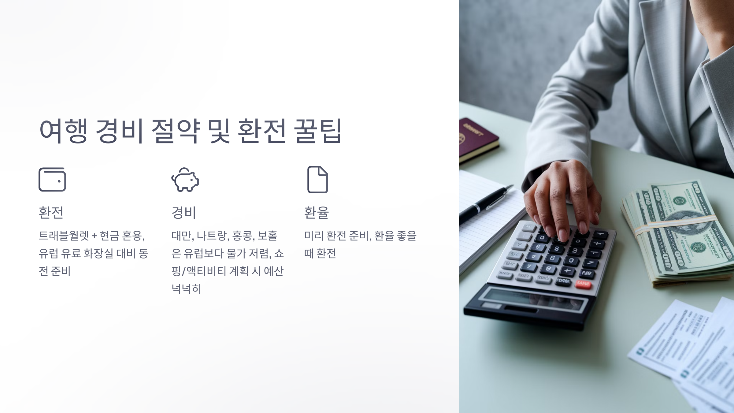 요약: 트래블월렛과 현금 혼용, 물가 고려 예산 설정, 환율 좋을 때 환전