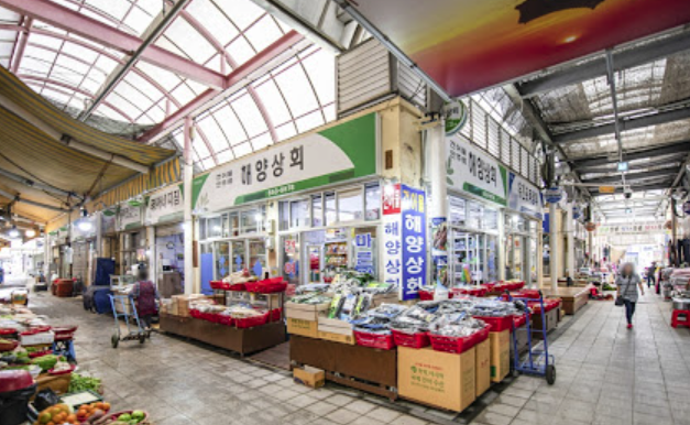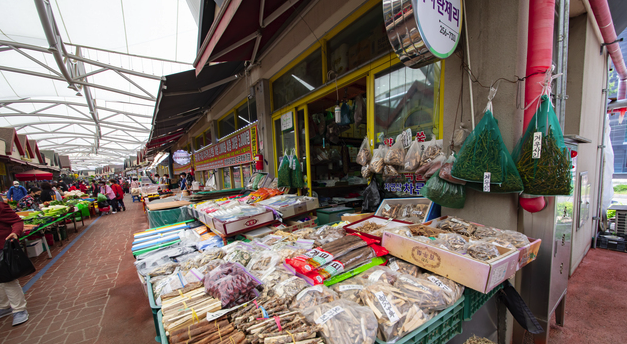 A2. 신선한 농산물과 지역 특산품인 멸치, 김 등이 인기 품목이에요. 직접 방문하면 품질 좋은 물건을 저렴한 가격에 구할 수 있어요.
