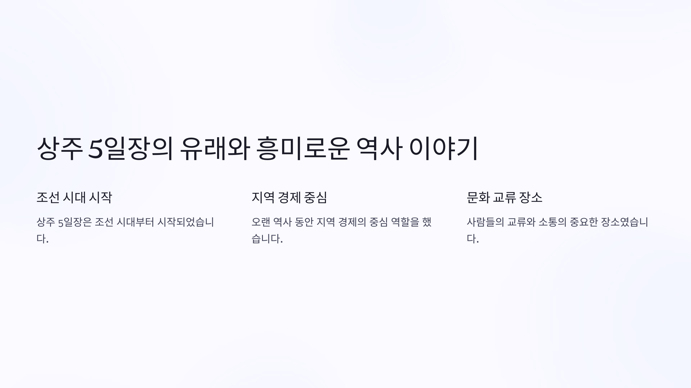 상주 5일장은 조선 시대부터 형성된 전통 시장이에요. 과거에는 교통의 중심지였던 상주 지역에 자연스럽게 장이 형성되었고, 주로 농산물과 가축을 거래하는 시장으로 발전했어요.