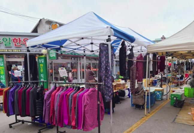 시장에서는 의류, 생활용품도 판매하는데, 특히 수제 공예품이나 한복 같은 전통 의류도 간혹 볼 수 있어요.