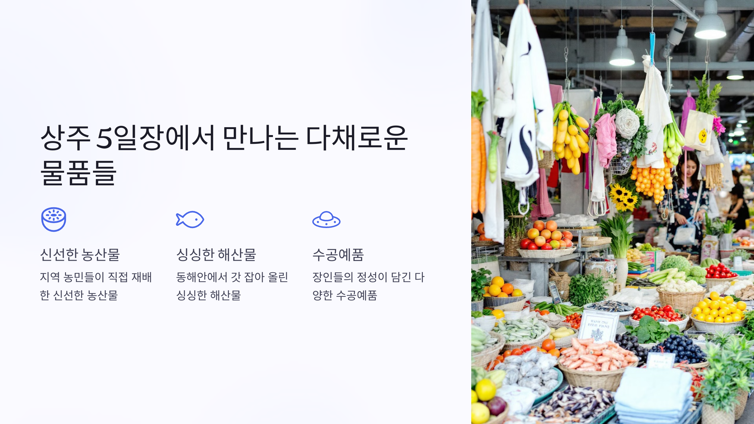 | 채소·과일 | 지역 농민이 직접 재배한 신선한 농산물 |