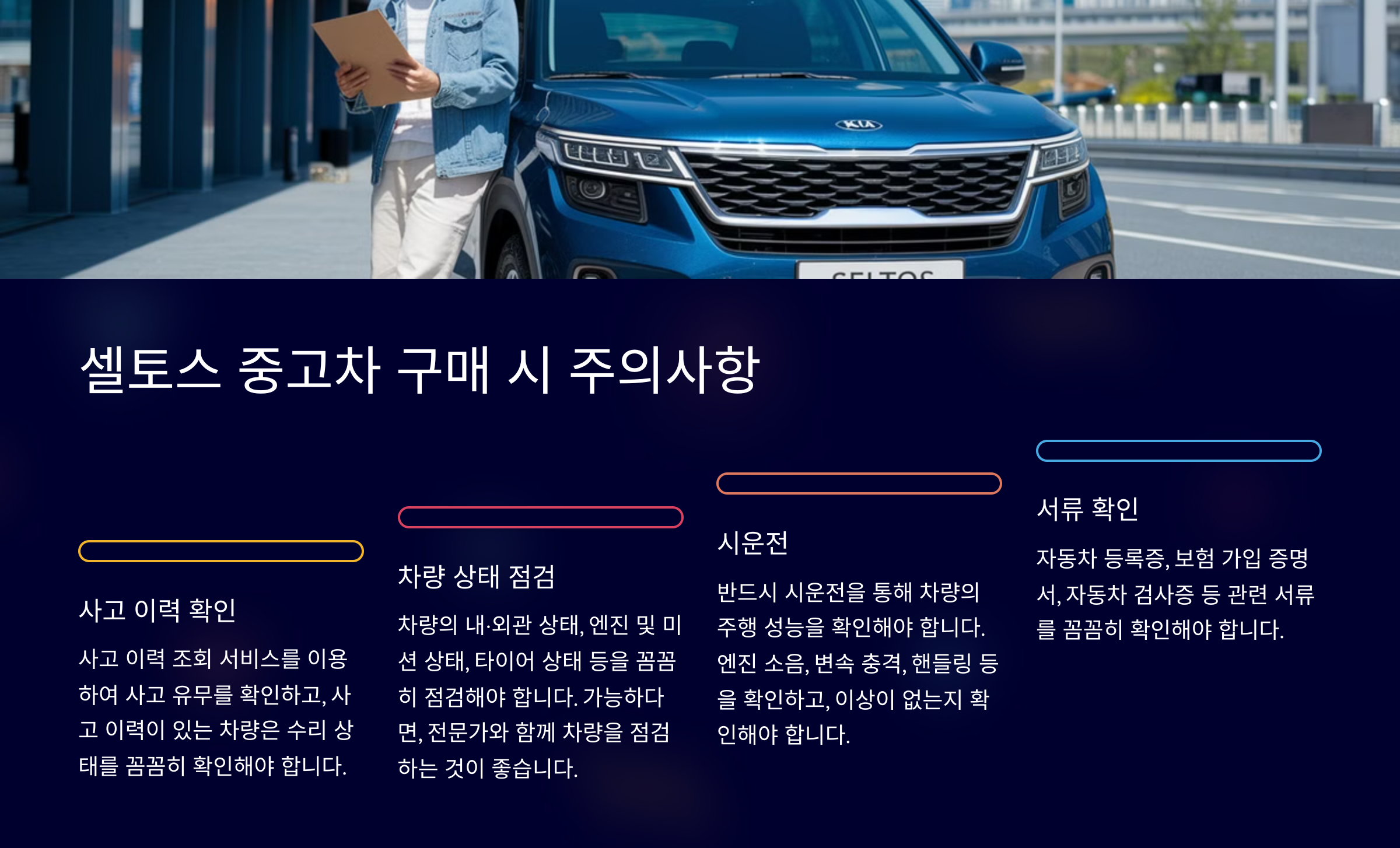 셀토스 중고차 구매 시 주의사항