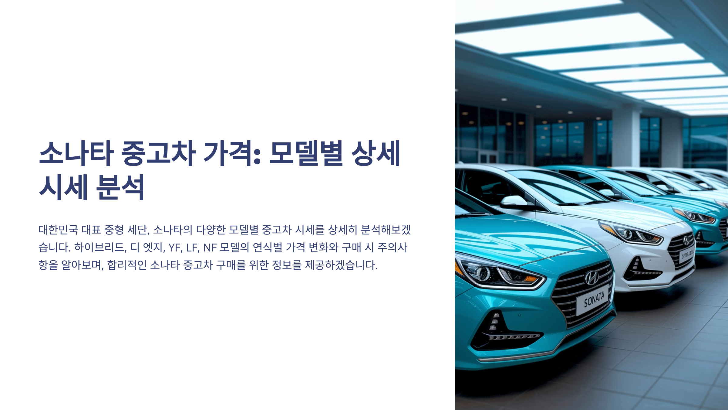 대한민국 대표 중형 세단, 소나타! 오랜 역사와 함께 다양한 모델을 선보이며 많은 사랑을 받아왔습니다. 합리적인 가격으로 소나타를 구매하고자 중고차 시장을 찾는 분들이 많으실 텐데요. 이번 글에서는 소나타 중고차 가격, 특히 하이브리드 모델과 디 엣지, YF, LF, NF 모델의 중고 시세를 꼼꼼하게 분석하여 구매에 도움이 될 정보를 제공하겠습니다. 연식별, 모델별 소나타 중고 시세 변화와 함께 구매 시 주의사항까지 상세히 알아보겠습니다.