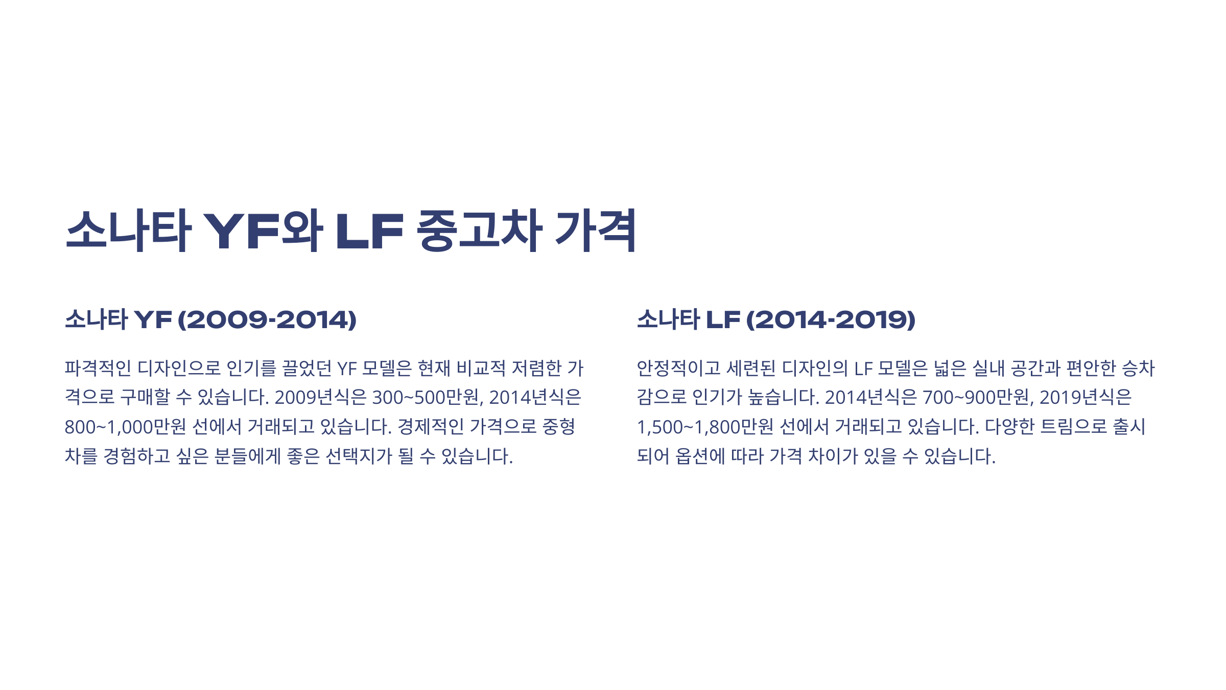 참고: 소나타 LF는 다양한 트림으로 출시되었으므로, 옵션에 따라 가격 차이가 발생할 수 있습니다.