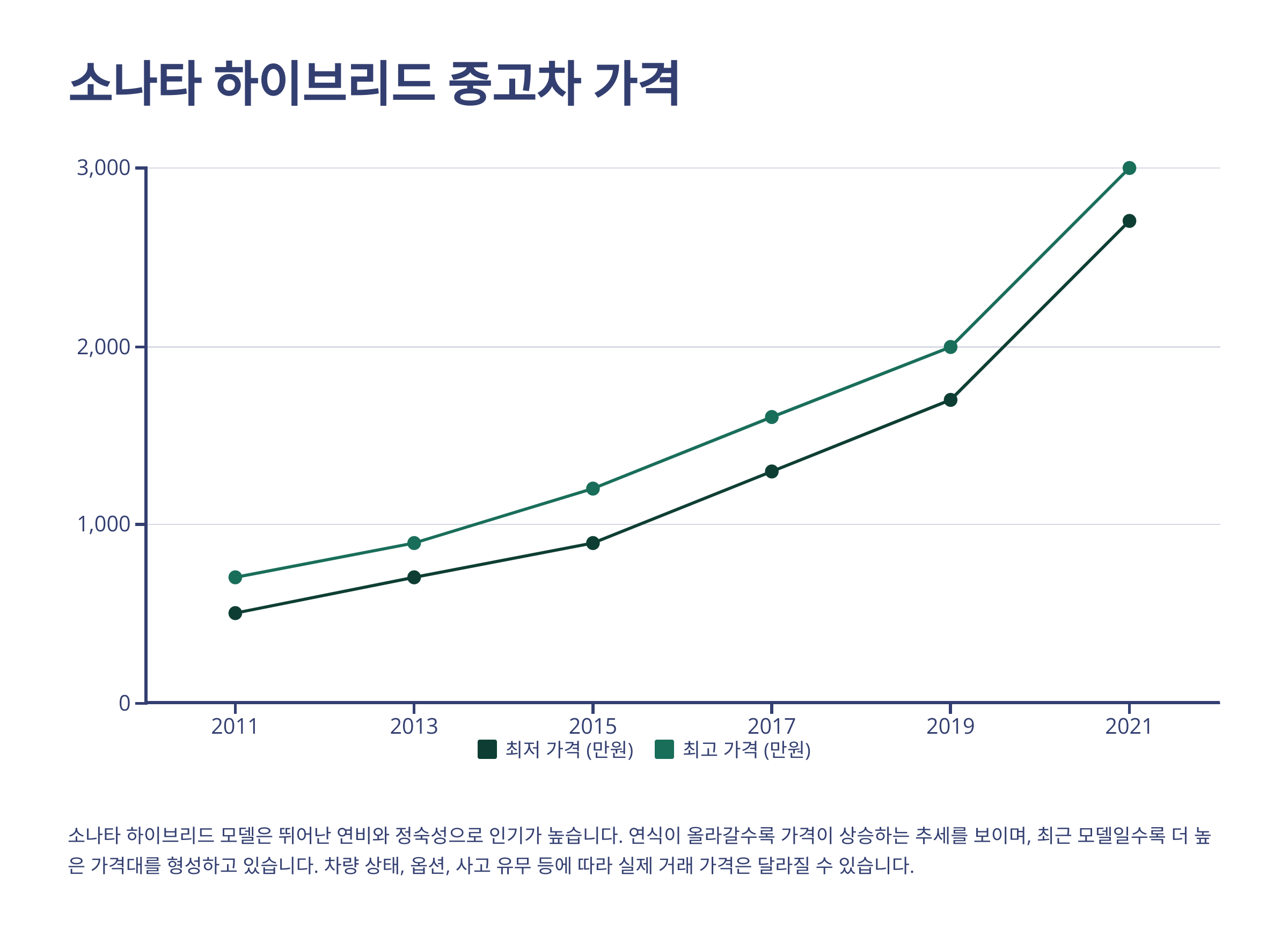 최근 친환경차에 대한 관심이 높아지면서 소나타 하이브리드 모델의 인기도 꾸준히 상승하고 있습니다. 뛰어난 연비와 정숙성이 강점인 소나타 하이브리드는 중고차 시장에서도 높은 수요를 보이고 있습니다. 아래 표는 소나타 하이브리드 모델의 연식별 중고 시세를 나타냅니다.