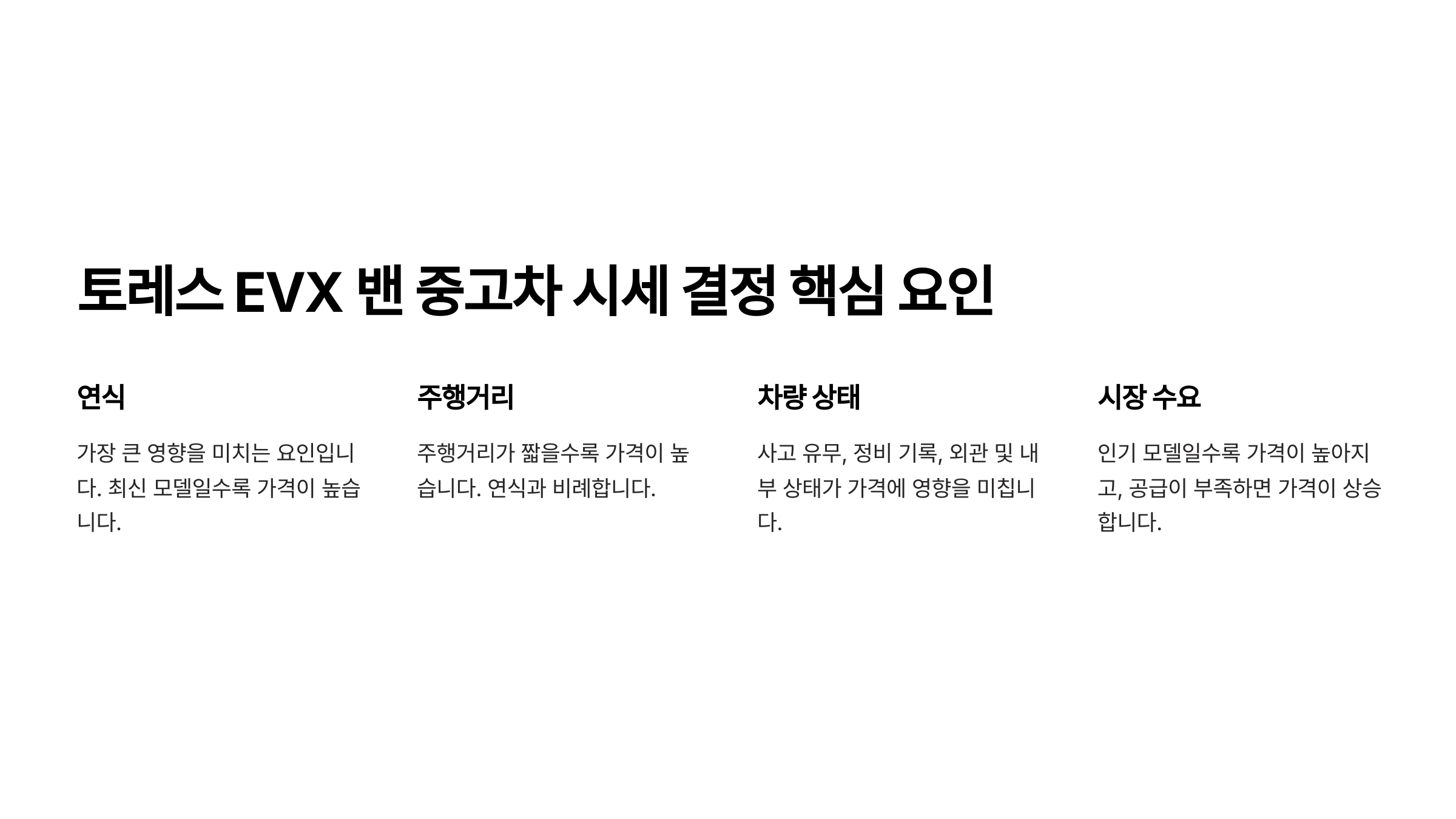 쌍용 토레스 EVX 밴 중고차 시세에 영향을 미치는 요인