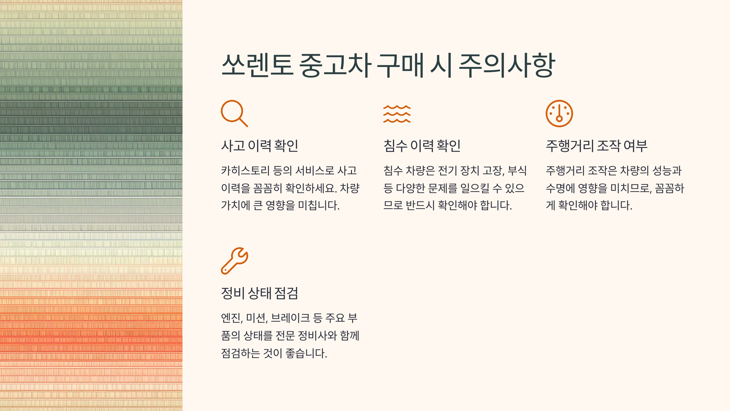쏘렌토 중고차 구매 시 주의사항