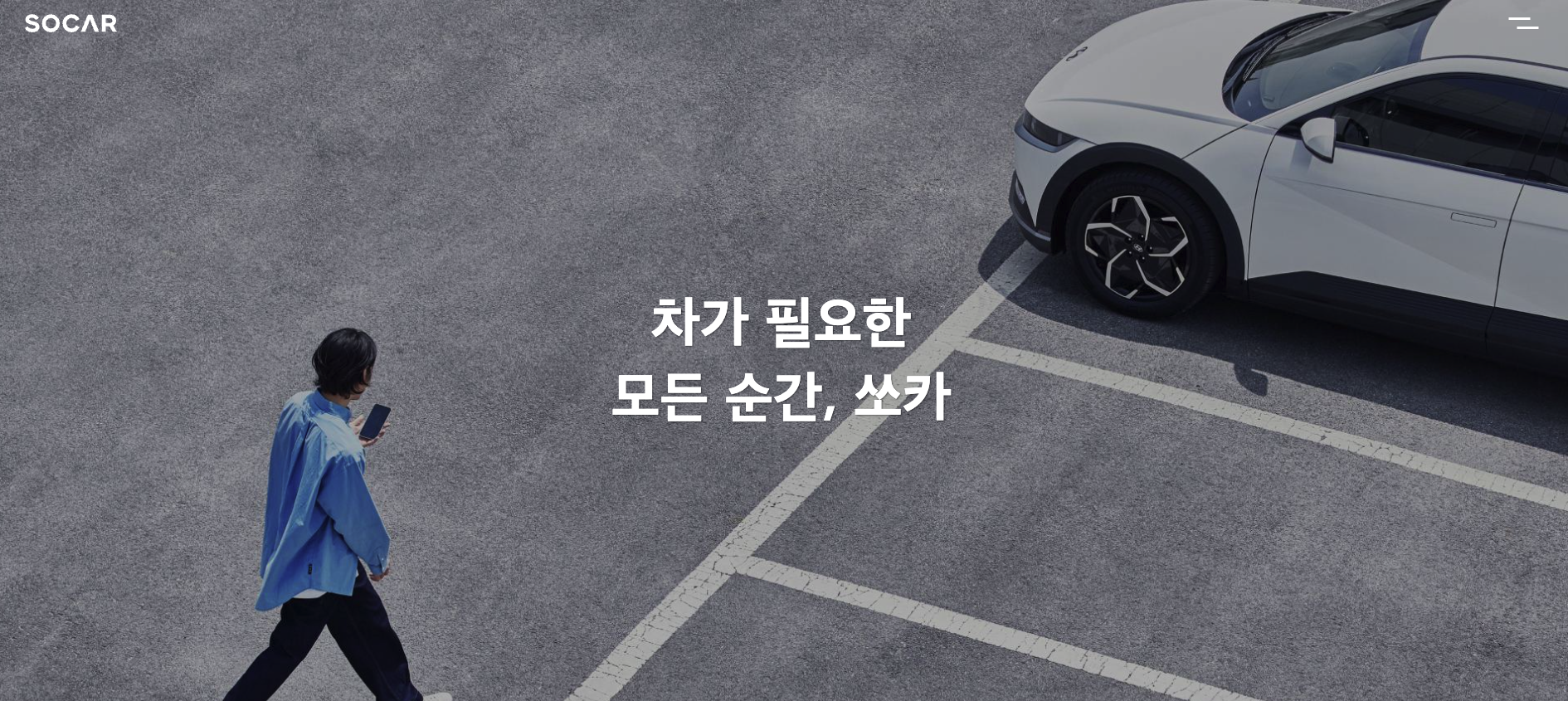 쏘카는 시간 단위로 차량을 대여할 수 있는 편리한 카셰어링 서비스예요. 소형차부터 SUV, 전기차까지 다양한 차량을 필요할 때 원하는 시간만큼만 이용할 수 있어, 차량 구매 부담 없이 편리하게 사용할 수 있답니다.