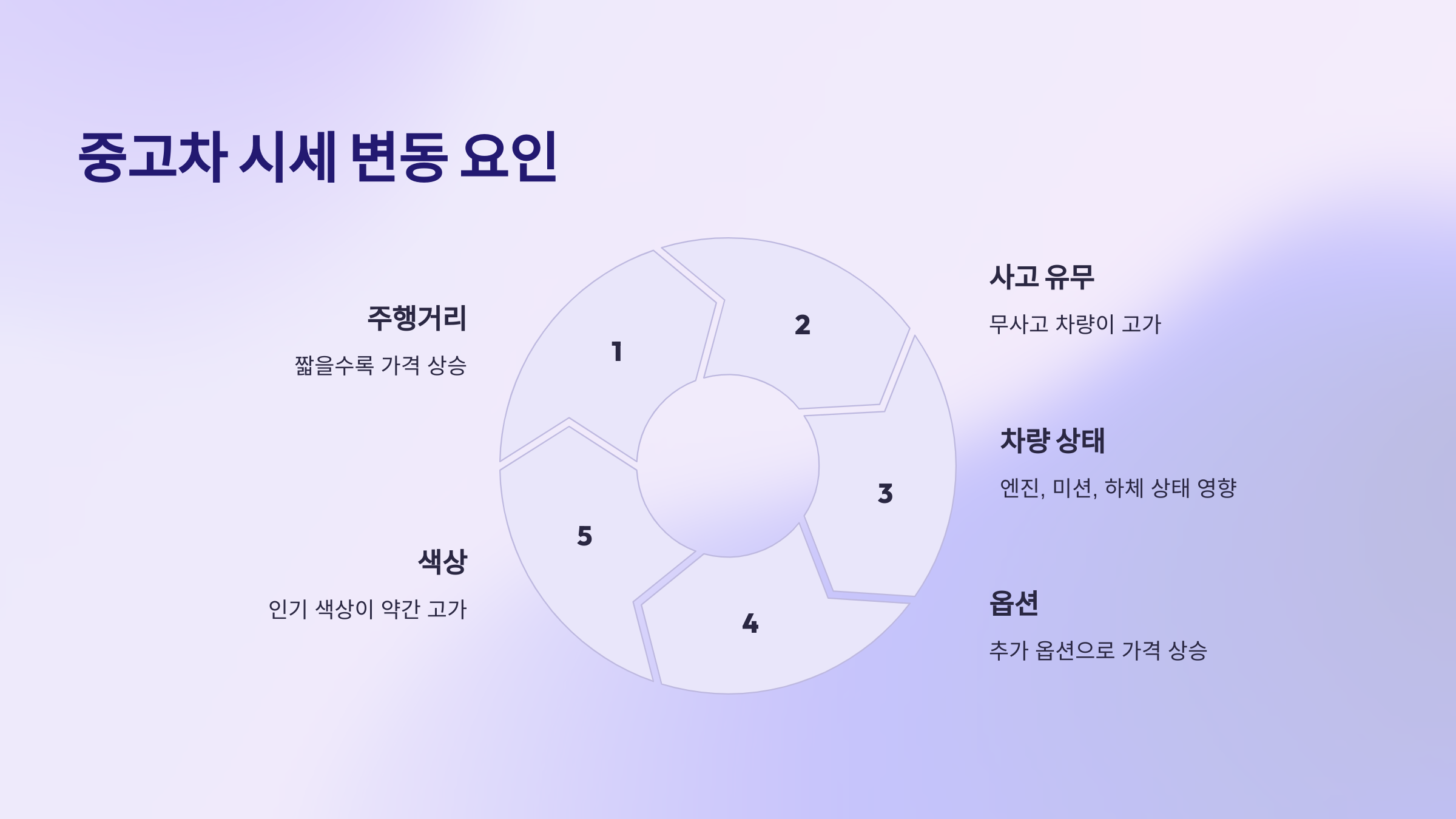 - 옵션: 썬루프, 내비게이션, 스마트키 등 추가 옵션이 장착된 차량은 가격이 더 높게 형성됩니다.