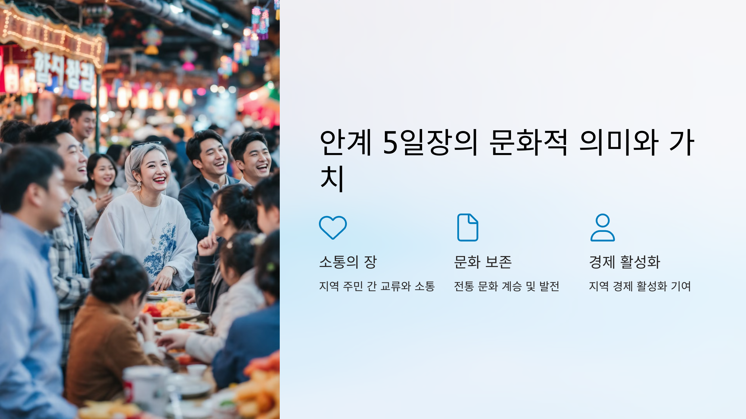이처럼 안계장날은 오랜 세월 동안 지역 경제와 함께 발전해 왔어요. 지금도 많은 사람들이 찾는 전통 장터로서 역할을 하고 있답니다!