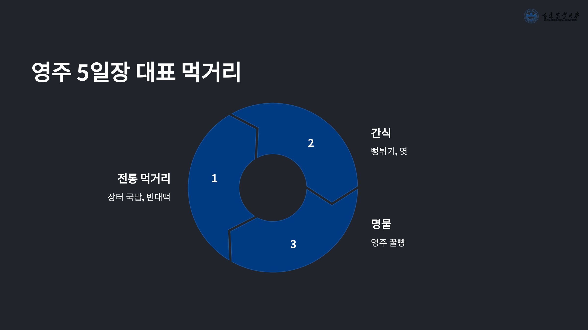영주 5일장은 다양한 먹거리가 많아 장터를 돌면서 여러 가지 음식을 맛보는 재미가 쏠쏠해요. 영주 사과와 인삼 요리를 함께 즐겨보세요!