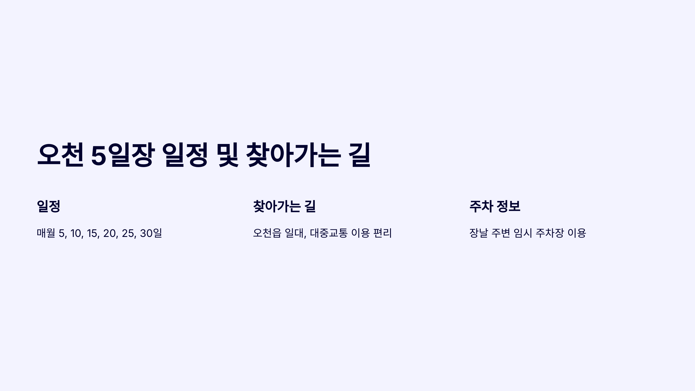🔽 아래에서 오천장날 일정과 자세한 정보를 확인하세요! 🔽