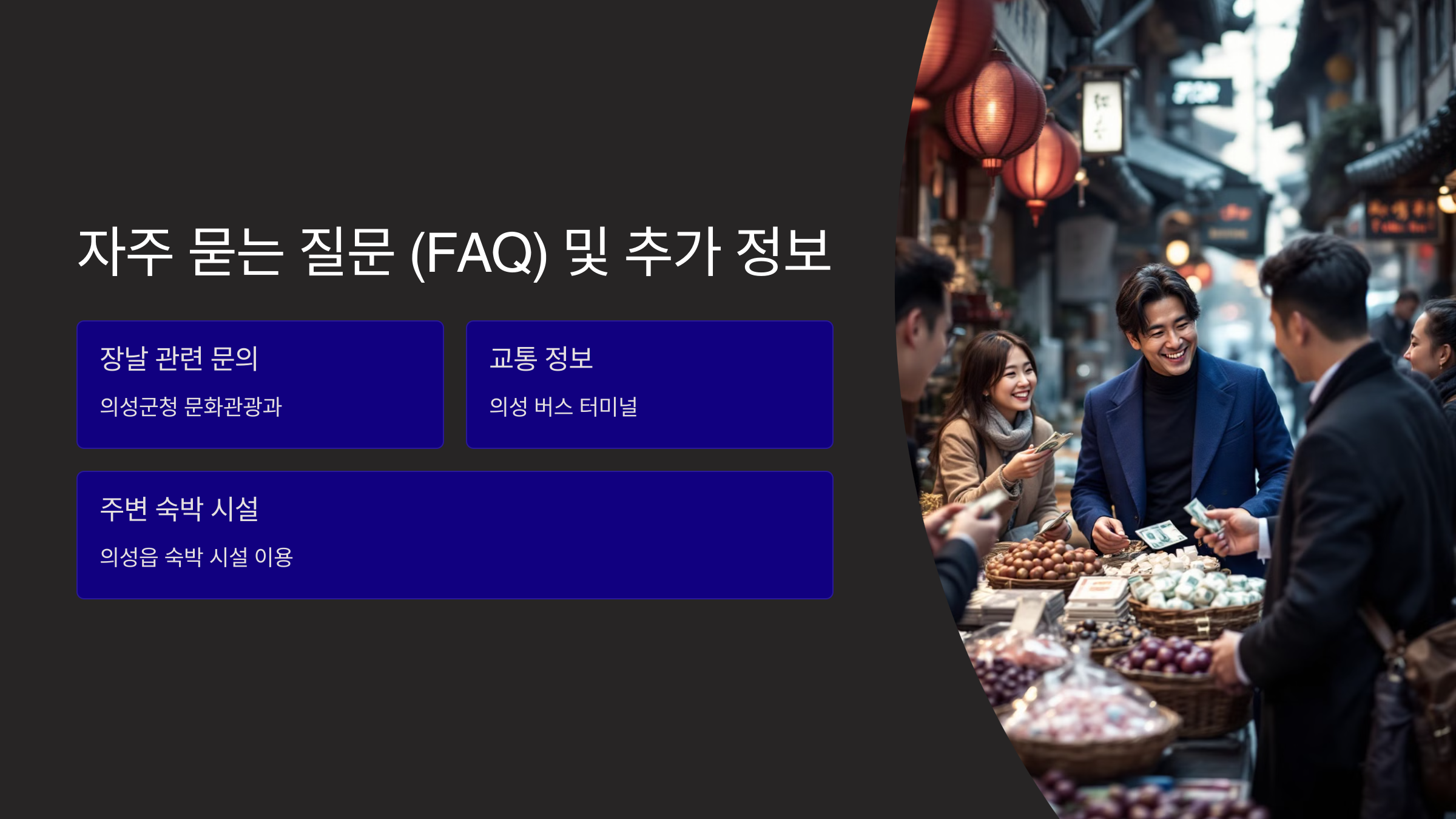 이처럼 의성장날은 단순한 시장이 아니라, 지역의 역사와 함께 성장해 온 중요한 문화적 공간이에요. 전통적인 장터 분위기를 그대로 간직하고 있어 방문할 가치가 충분한 곳이랍니다! 🎭