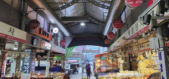 | 전통 음식 | 즉석에서 만들어 파는 국밥, 부침개, 전통 간식 |