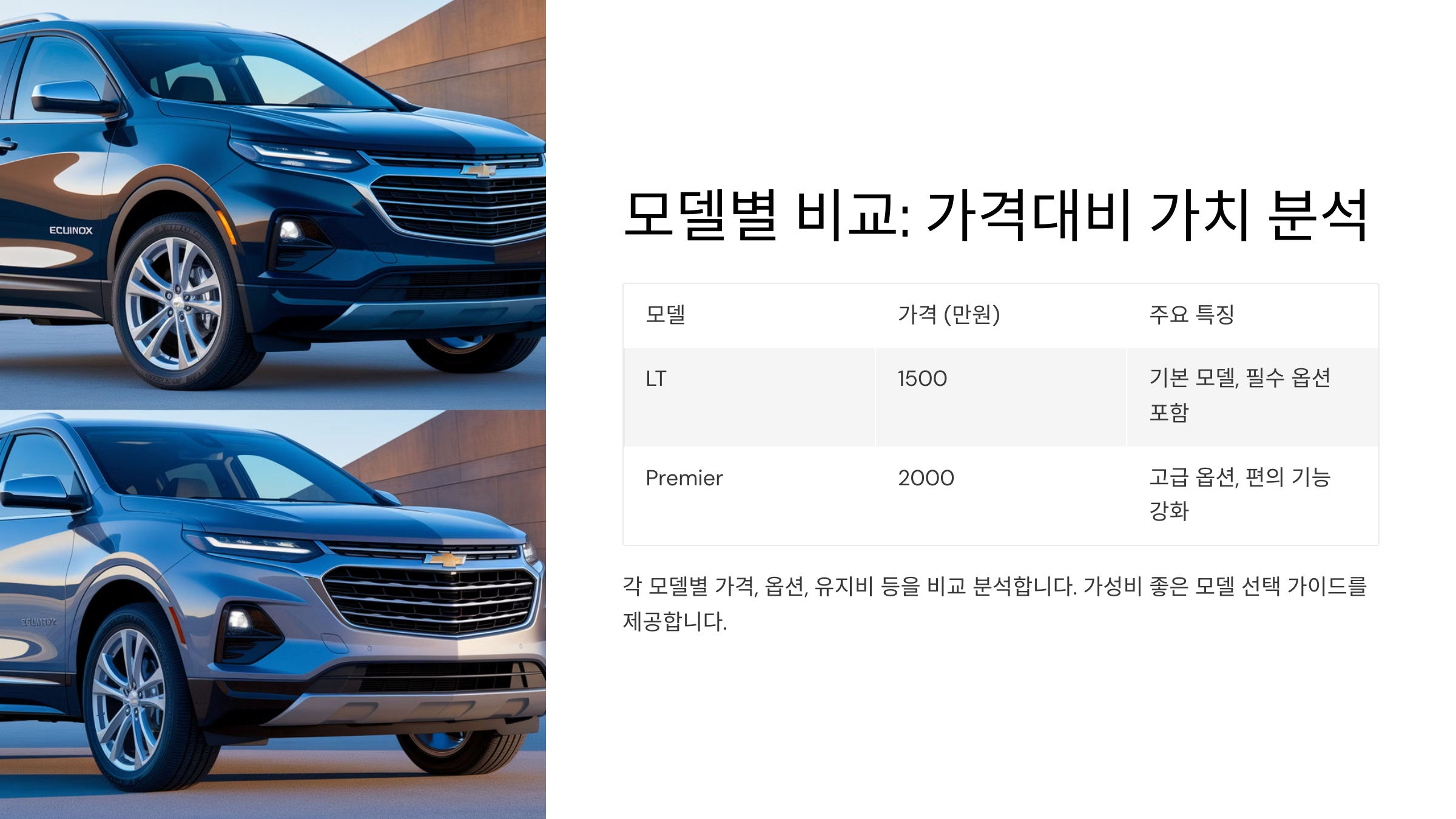 이쿼녹스 쉐보레 중고차 가격: 모델별 상세 분석