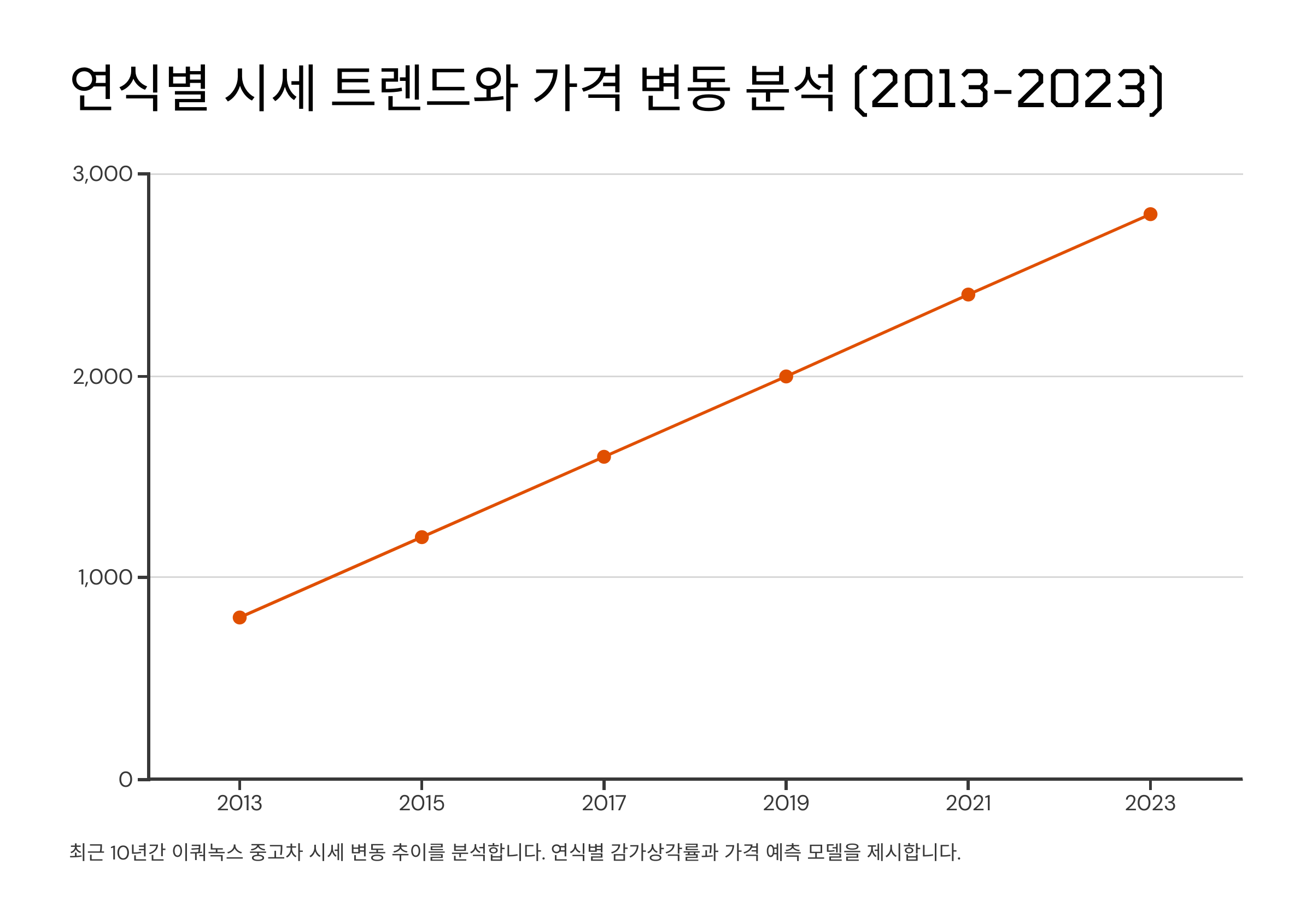 아래 표는 최근 10년간 이쿼녹스 쉐보레 중고 시세를 분석한 결과입니다. 해당 시세는 일반적인 시세 범위이며, 실제 거래 가격은 차량 상태, 옵션, 지역 등에 따라 달라질 수 있습니다.