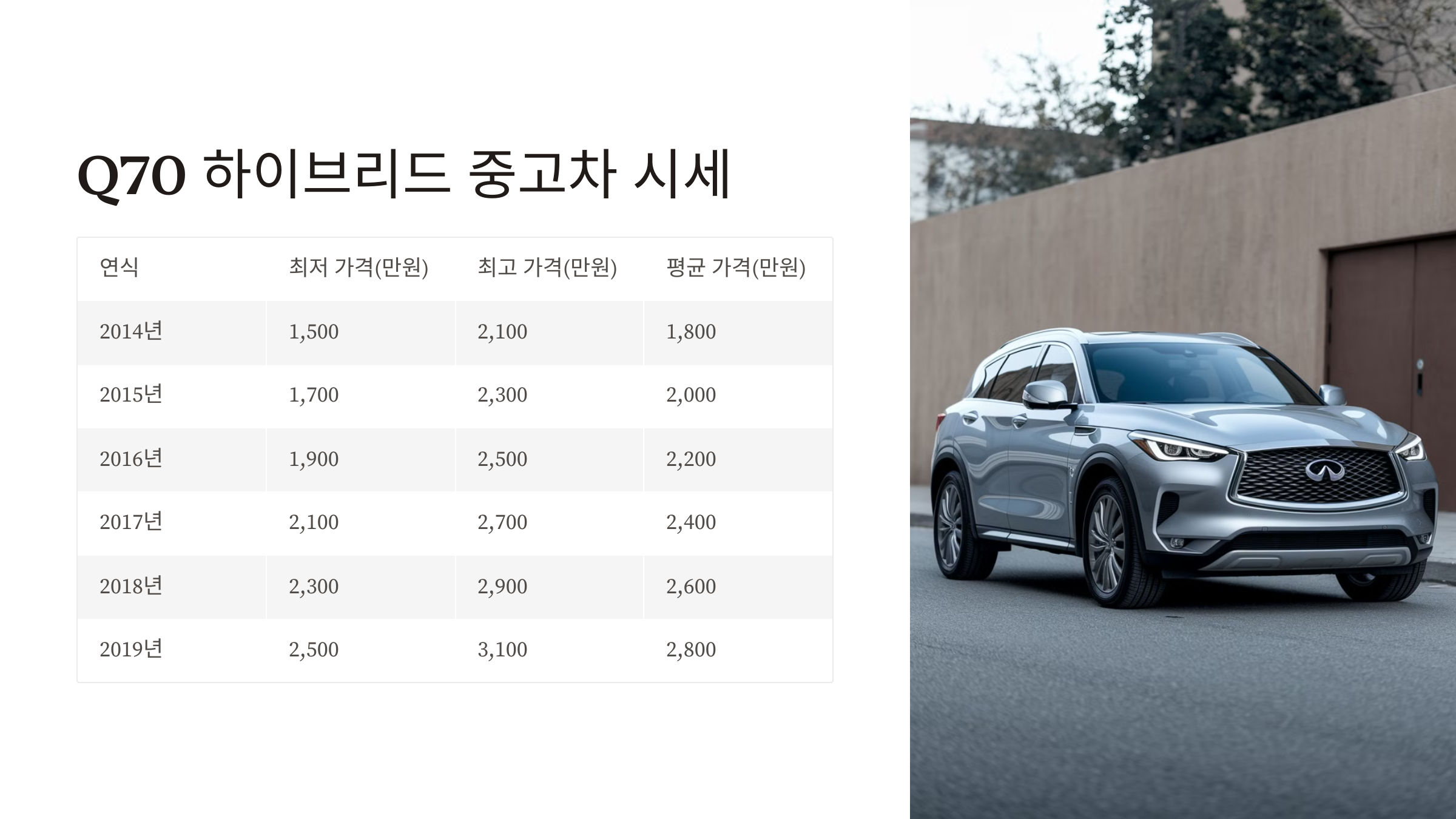 연식별 Q70 하이브리드 중고차 시세 (2014년 ~ 2019년)