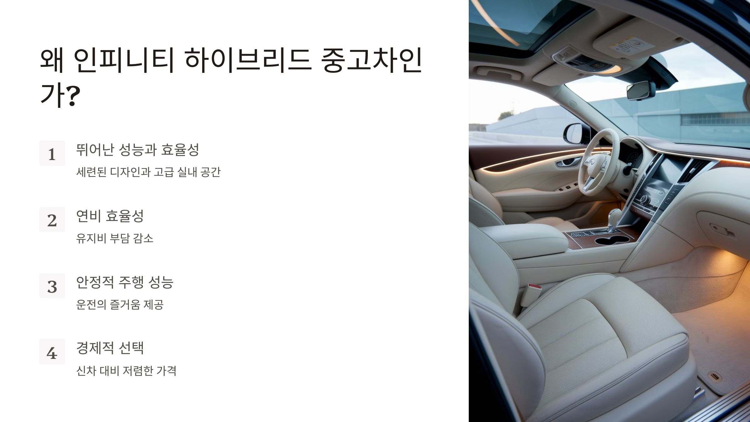 인피니티 하이브리드 중고차, 왜 주목해야 할까요?