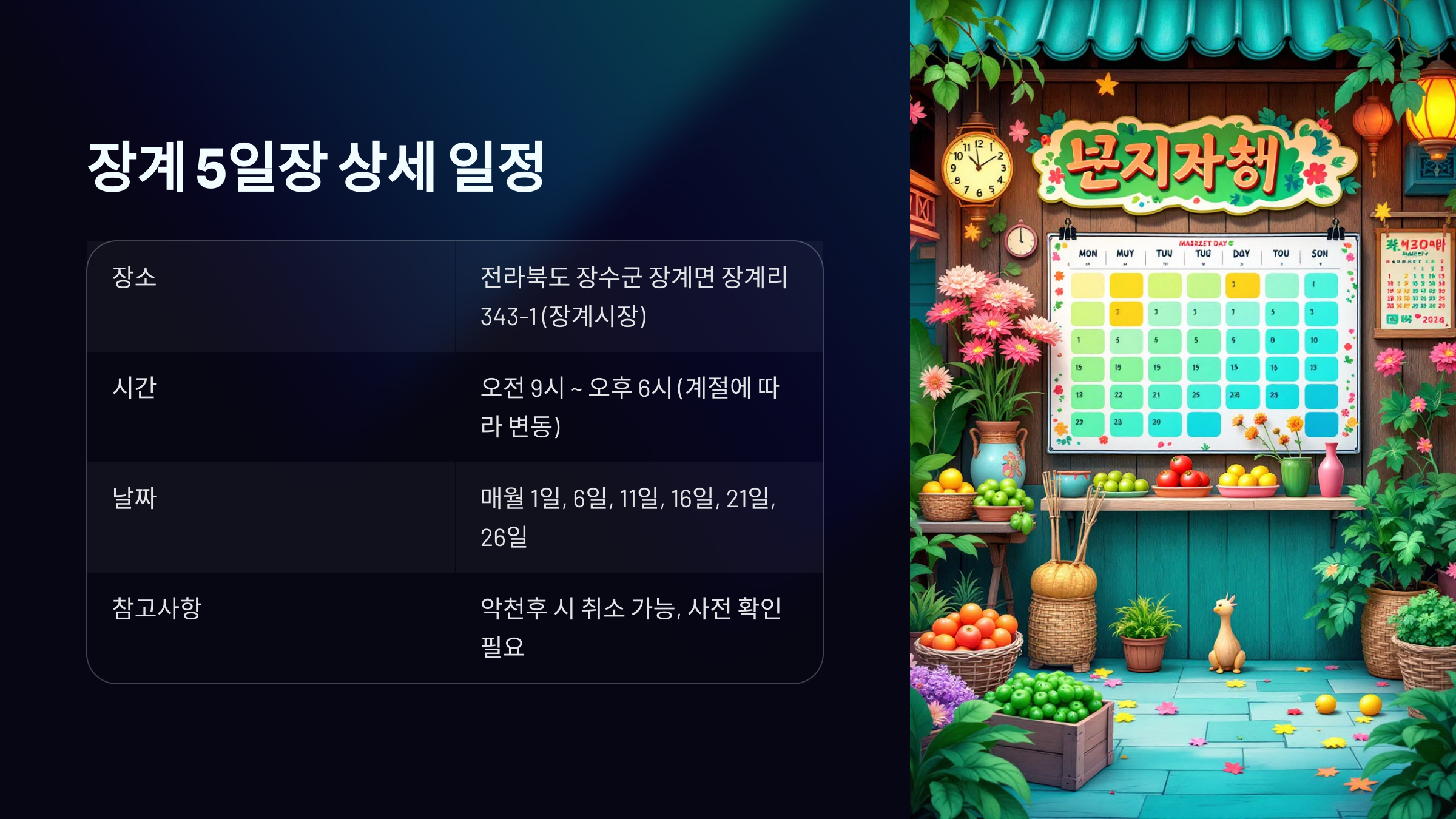 2. 장계 5일장 상세 일정: 날짜, 시간, 장소 총정리