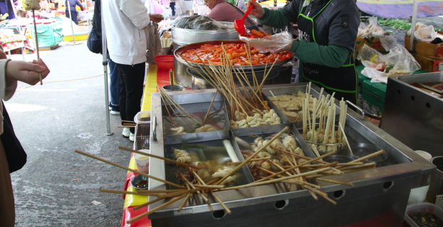 A4. 부침개, 어묵, 떡볶이, 순대 같은 길거리 음식이 많아요. 맛도 훌륭하고 가격도 합리적이라 꼭 한번 드셔 보세요.