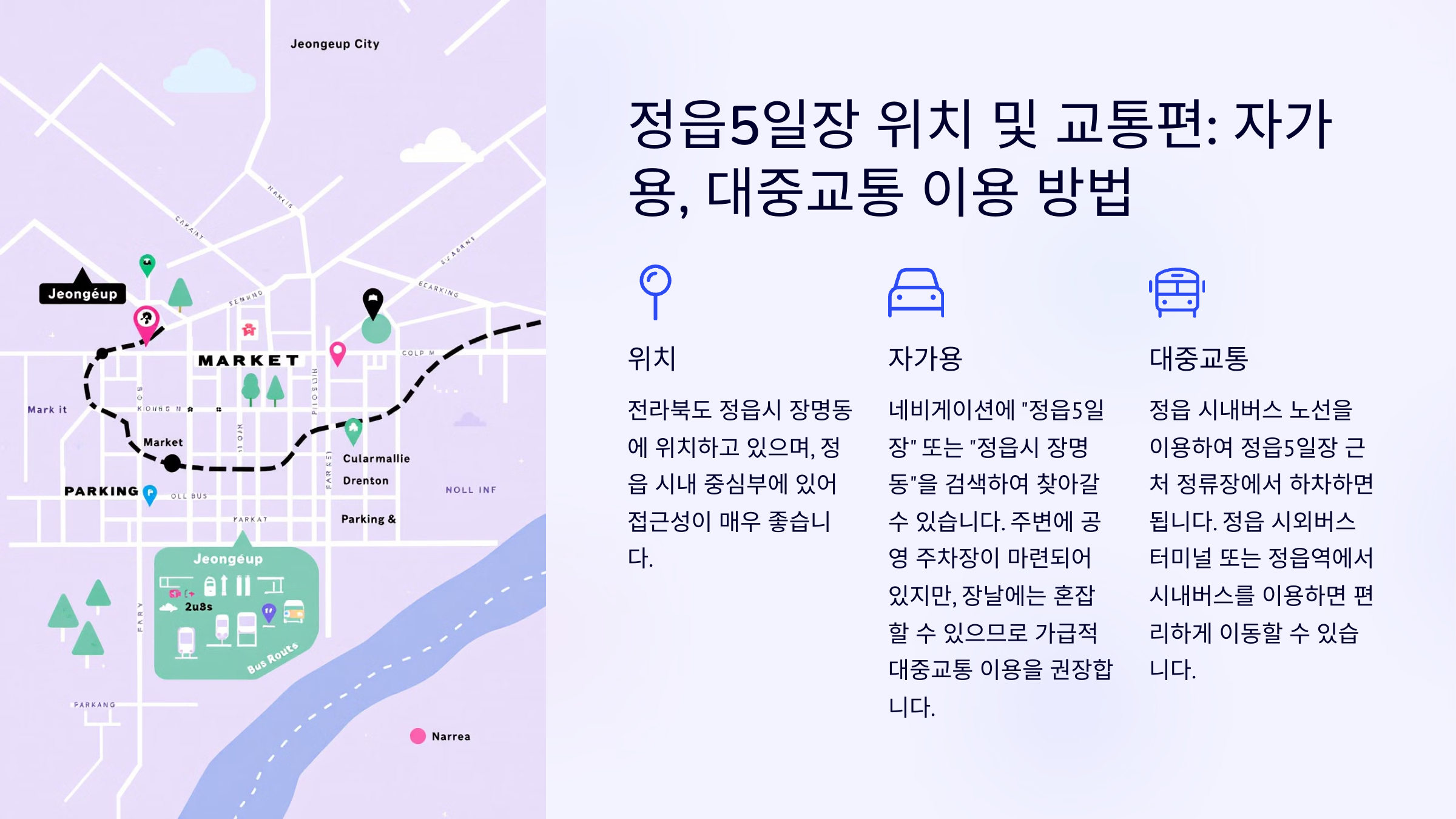 3. 정읍5일장 위치 및 교통편: 자가용, 대중교통 이용 방법
